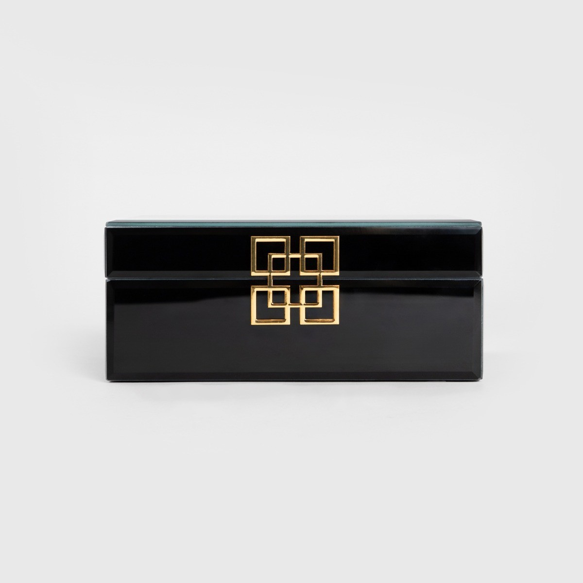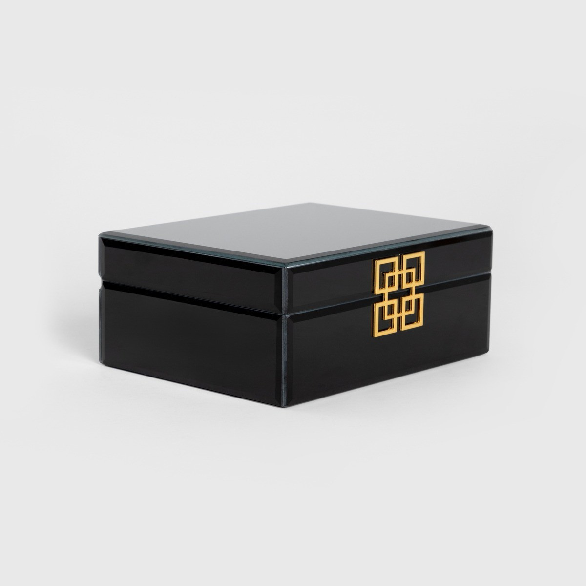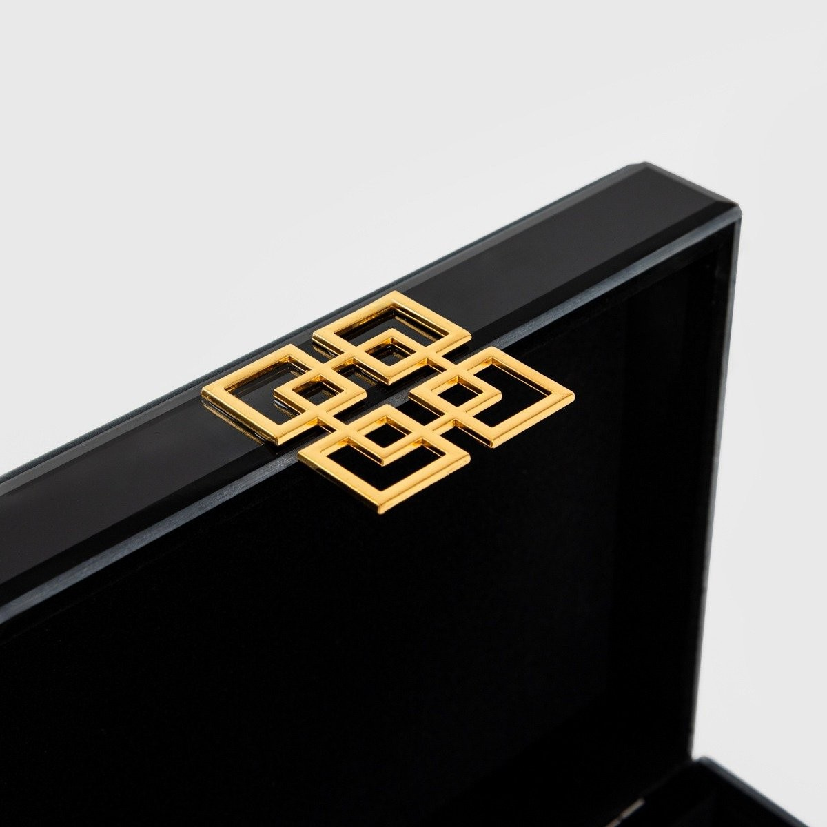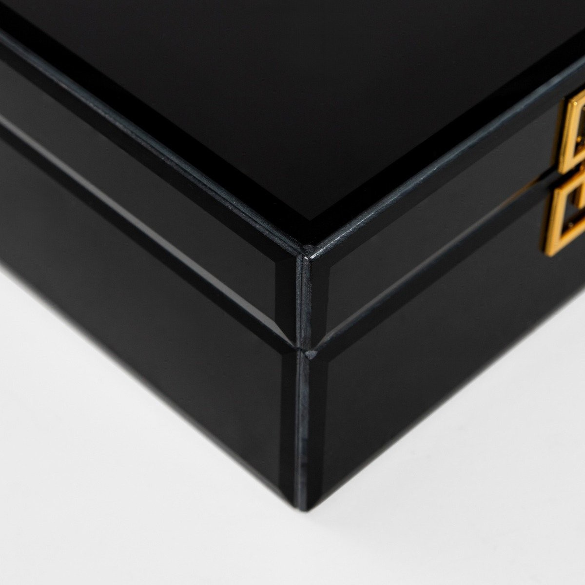 Šperkovnice CARNIVAL je kombinací moderní elegance s praktičností. Její minimalistický, černý povrch a zlaté zdobení v geometrickém stylu z ní činí výjimečný doplněk, který se skvěle hodí jak do klasických, tak moderních interiérů.