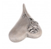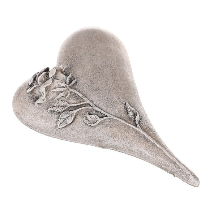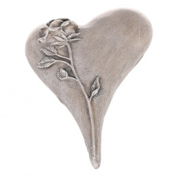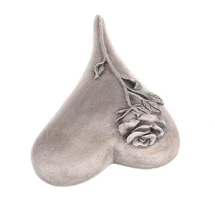 Srdce zaoblené s růží - polyresin, šedé