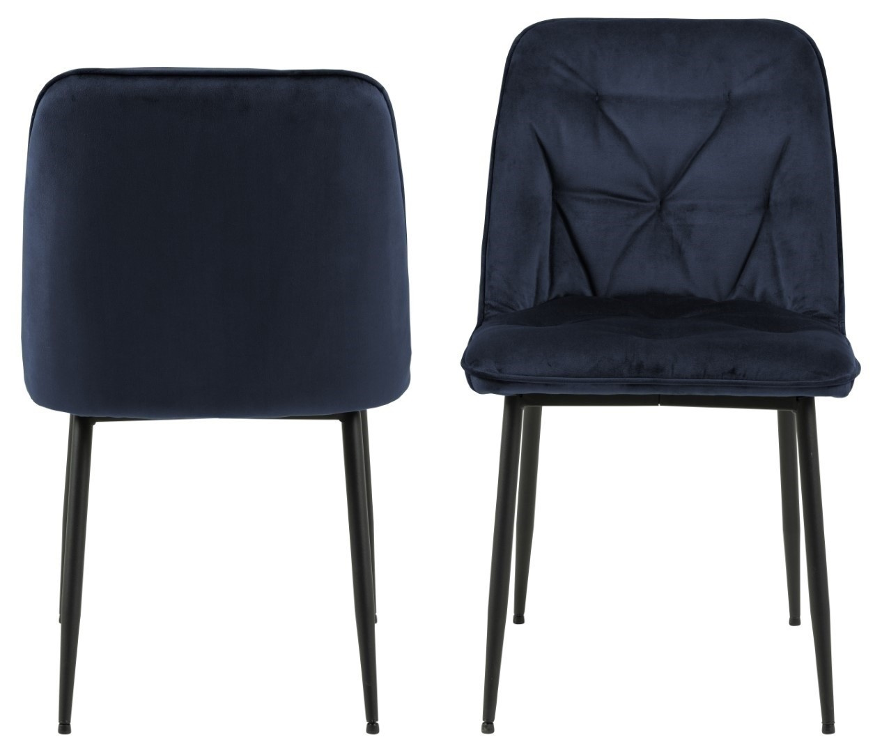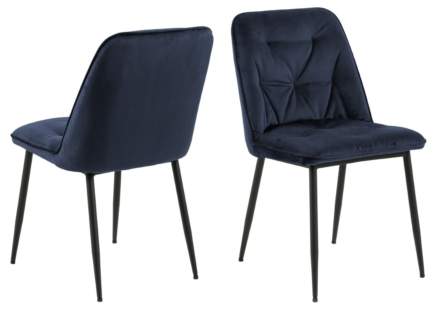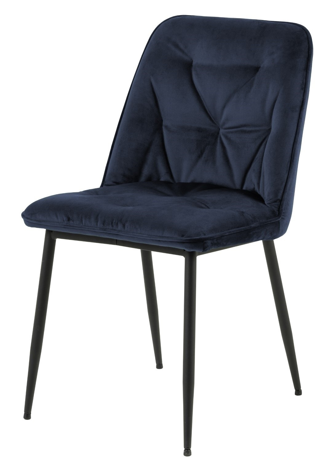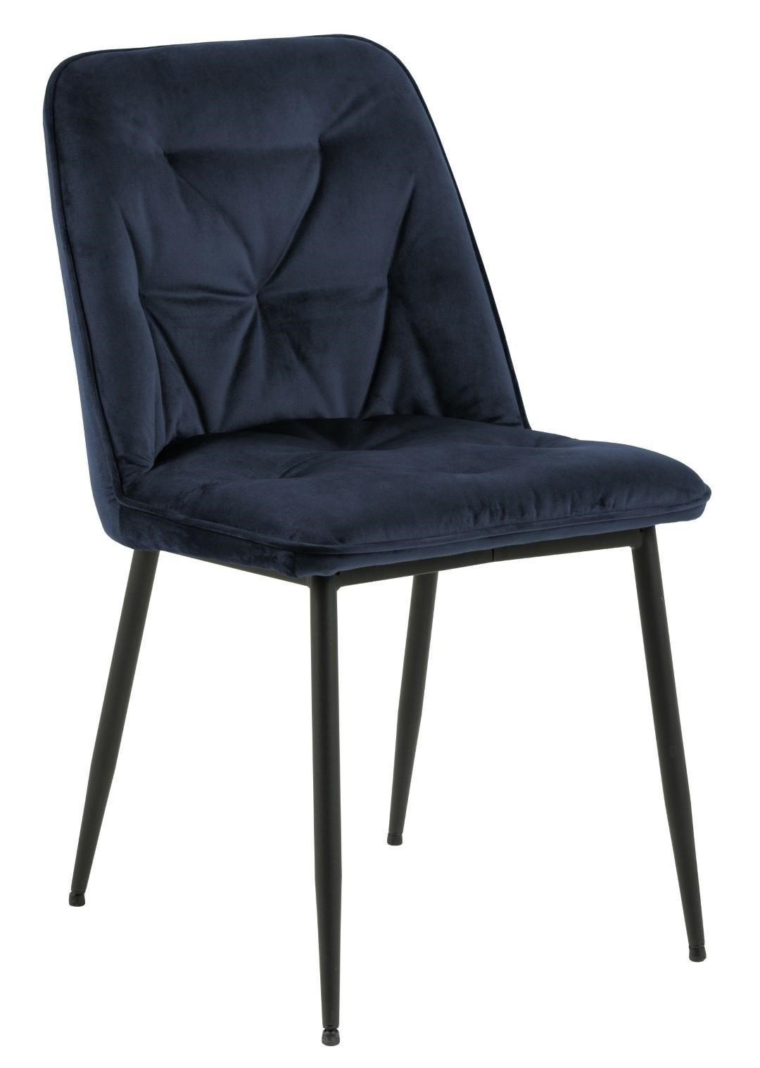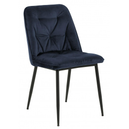 Židle Brooke standard je židle čalouněná měkkou sametovou látkou Vic fabric midnight blue 77AC FR. Židle má pohodlné opěradlo, které bylo ozdobeno prošíváním, což jí dodává styl. Základem židle jsou kovové nohy lakované černou práškovou barvou. Maximální zatížení: 120 kg. Výška opěradla: 36 cm Šířka sedáku: 50 cm Hloubka sedáku: 40 cm Počet kartonů: 1 Rozměry kartonů: 57x52x61 cm Hmotnost kartonů: 8 kg