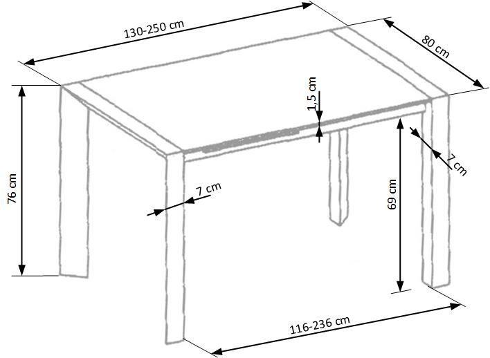 rozkládací stůl, rozměry: 130÷250/80/76 cm, materiál: MDF lakovaná / lakovaná ocel, barva: MDF - bílá