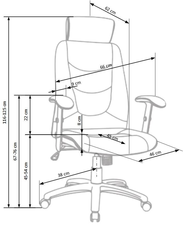 mechanismus TILT, nastavitelné područky, rozměry: 66/49/116÷125 cm, materiál: ekokůže, barva: černá
