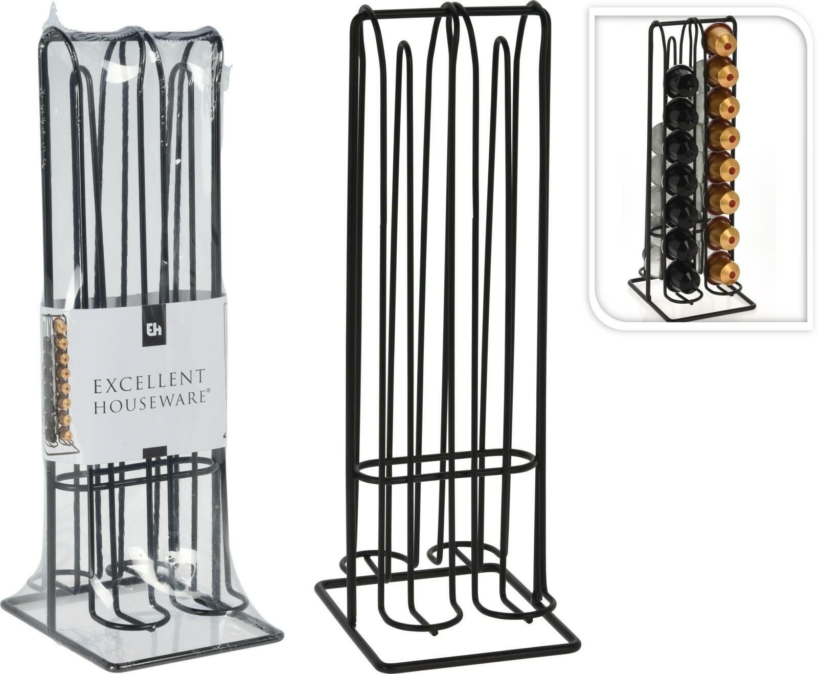Stojan na kapsle do kávy vyrobený z kovového drátu, pokrytý černým matným povlakem, je elegantní a praktické řešení pro ukládání kapslí. Jeho rozměry jsou 12x10x29 cm a váha 365 gramů, což z něj činí lehký, ale zároveň stabilní. Stojan je navržen tak, aby pojal až 32 kapsle modelu Nespresso nebo jiné o stejném rozměru, což umožňuje snadný přístup k oblíbeným chutím a udržení pořádku. Matný, černý povrch dodává moderní charakter a jednoduchý design zajišťuje, že stojan dokonale ladí s různými interiéry. Každý kus je zabalen v našem unikátním papírovém obalu a plastovém sáčku, což zajišťuje dodatečnou ochranu během přepravy. Tento stojan na kapsle do kávy je nejen praktickým doplňkem do každé kuchyně, ale také stylovým prvkem, který vnese eleganci do každého kávového koutku.