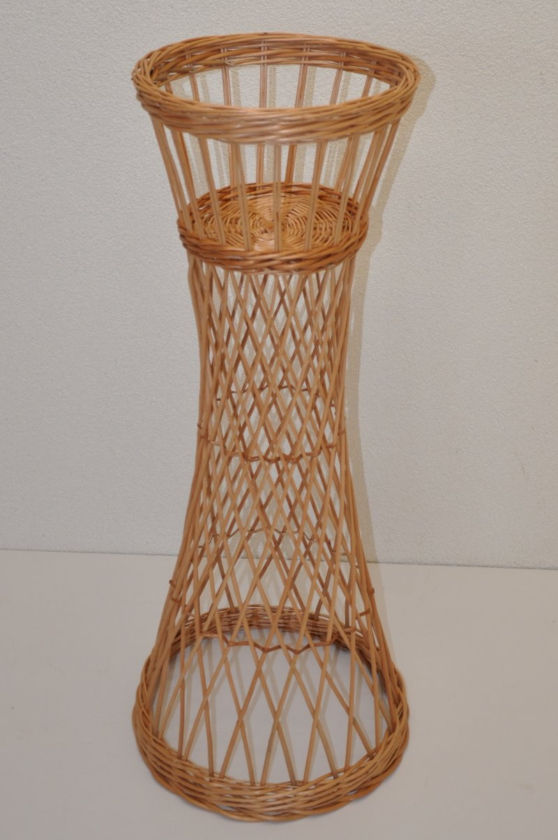 Stojan na květinu vyrobený z přírodního vrbového proutí. | Celková výška stojanu je 88 cm. Průměr spodní části je 36 cm. Průměr horní části je 30 cm. Vnitřní průměr horní části pro květinu je 18 cm, což znamená, že můžete použít květináč s podmiskou o průměru podmisky 18 cm.