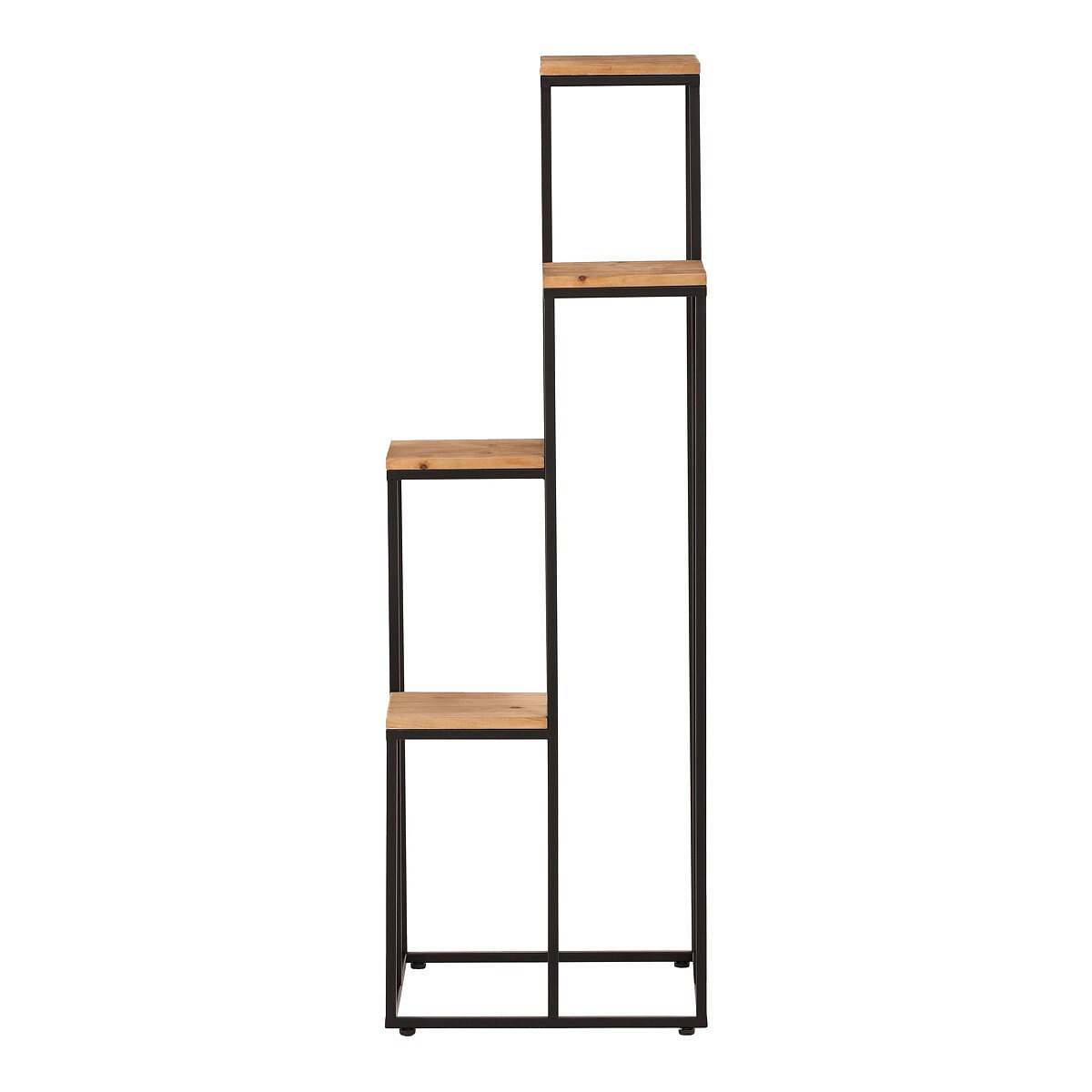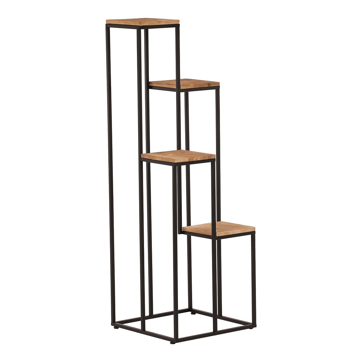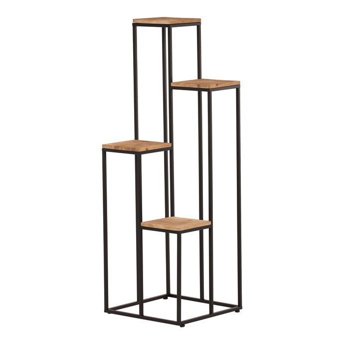 Čtyřpatrový stojan na květiny s kovovými rámy a dřevěnými deskami s nádhernou přírodní texturou je ideálním řešením pro výškové uspořádání vašich rostlin či dekorativních předmětů. Tento stojan nejen že šetří prostor, ale také přidá přírodní kouzlo a stylový vzhled do vašeho interiéru. Skvěle se hodí do obývacích pokojů, kanceláří nebo zimních zahrad.