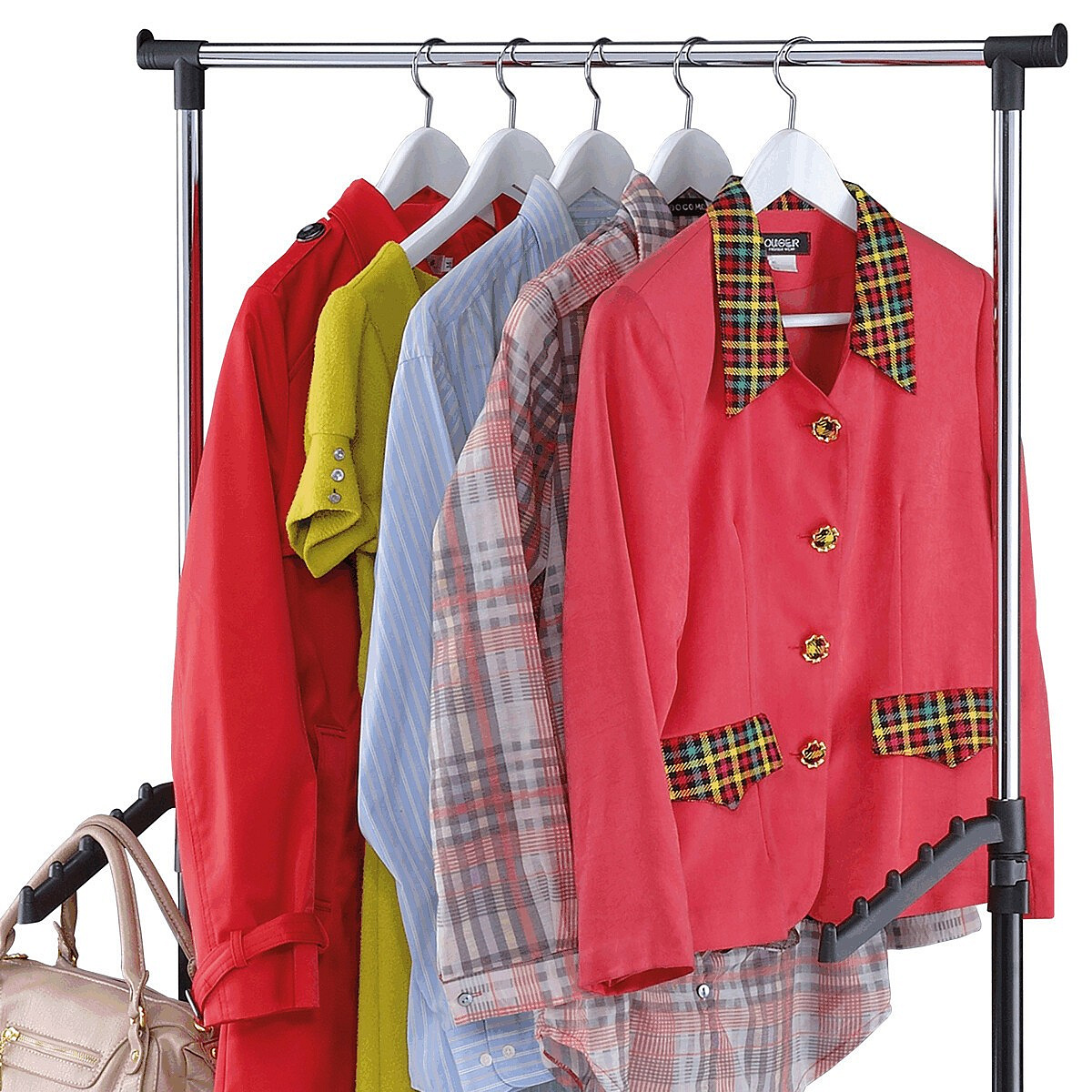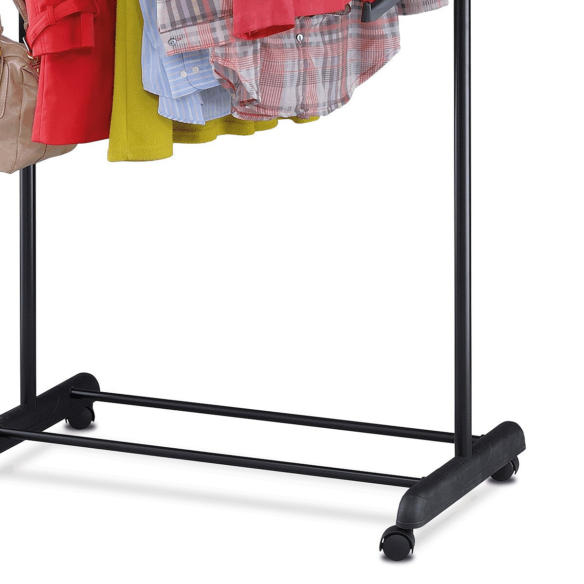 Stojan na šaty ABD-1212 BK značky Autronic nabízí praktické řešení pro uspořádání oděvů v domácnosti i komerčních prostorách. Je vyroben z pevného kovu s černým práškovým lakem a doplněn o plastové prvky, které zajišťují stabilitu a odolnost. Výraznou předností je výškově nastavitelná tyč, která umožňuje přizpůsobit prostor pro zavěšení různých délek oděvů. Součástí stojanu je také odkladač na tašky či doplňky a otočné závěsy, které usnadňují přístup k jednotlivým kusům oblečení. Stabilní podstava na kolečkách umožňuje snadnou manipulaci a přesun v interiéru, přičemž pevná konstrukce zajišťuje nosnost a dlouhou životnost.