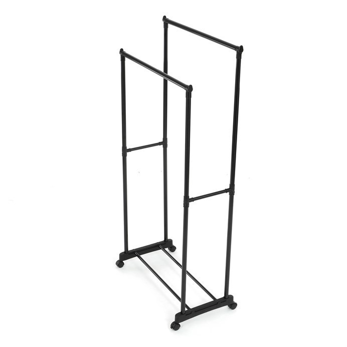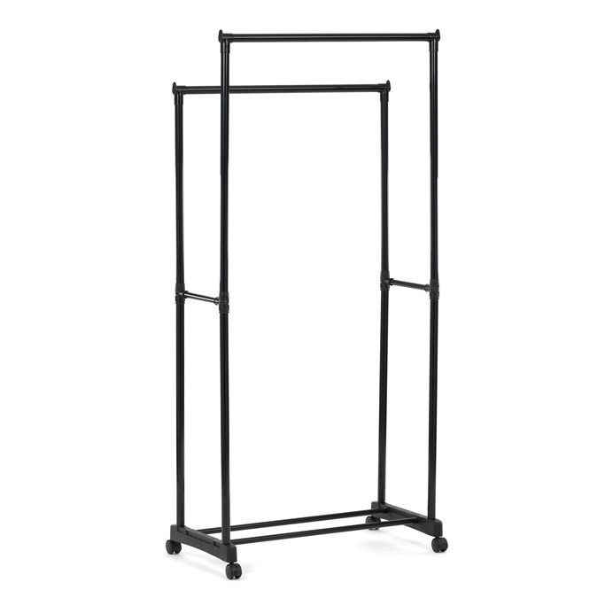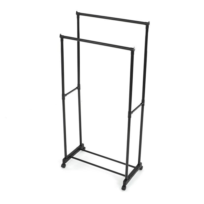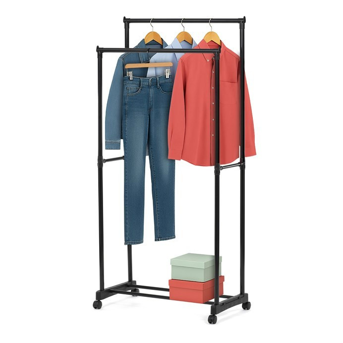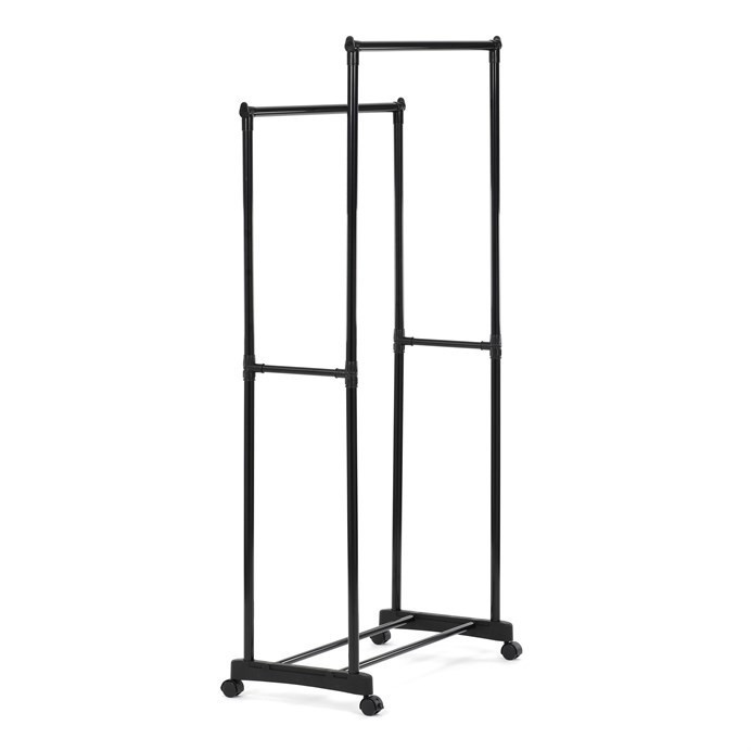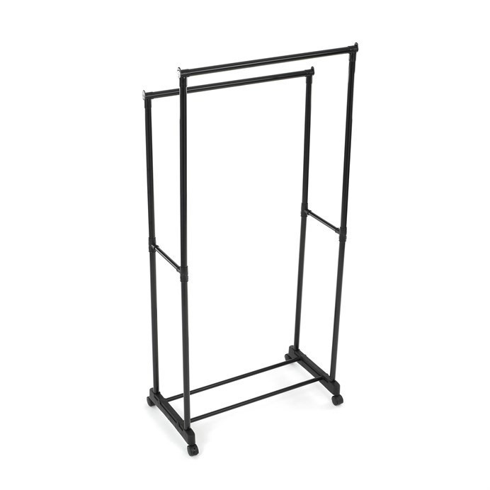 Praktický stojan na šaty značky Autronic je ideálním řešením pro přehledné uspořádání oblečení a doplňků. Černá kovová konstrukce nabízí odolnost a moderní vzhled, který snadno zapadne do jakéhokoli interiéru. Stojan disponuje dvěma tyčemi na zavěšení oděvů a dolní policí pro boty či tašky. Díky kolečkům je snadno přemístitelný a nabízí flexibilitu při jeho využití. Nastavitelná výška umožňuje přizpůsobení vašim potřebám, což z něj činí ideální doplněk do šatny, ložnice nebo předsíně.
