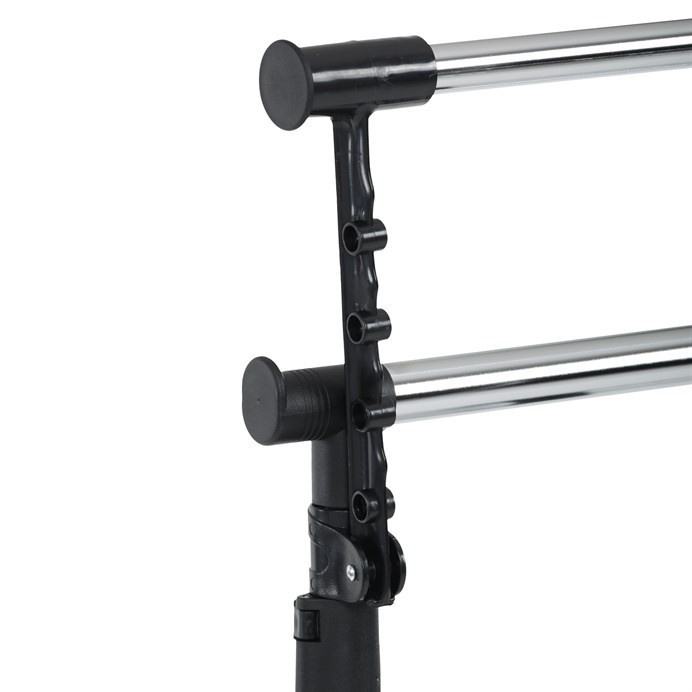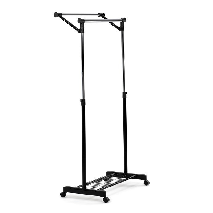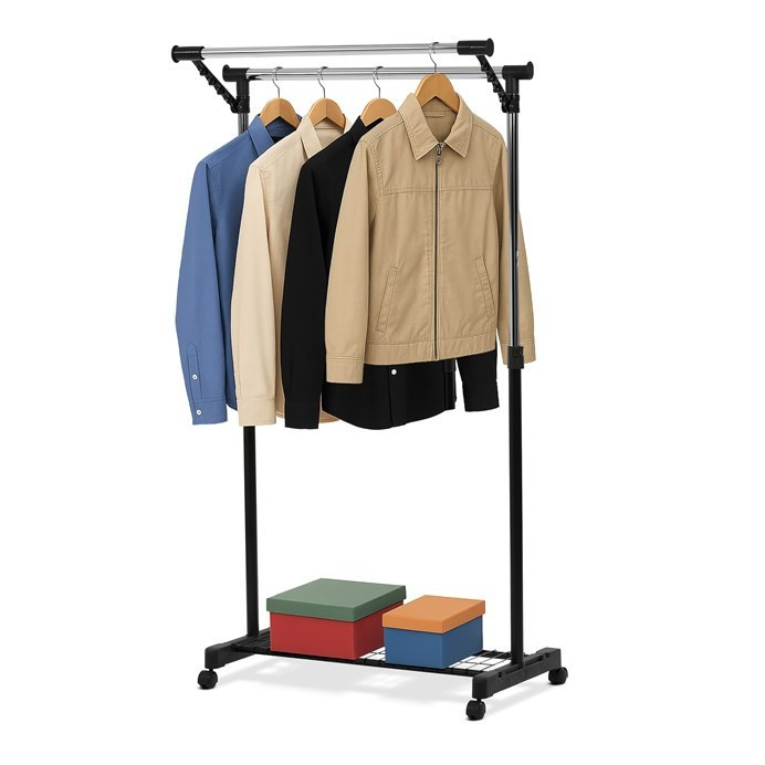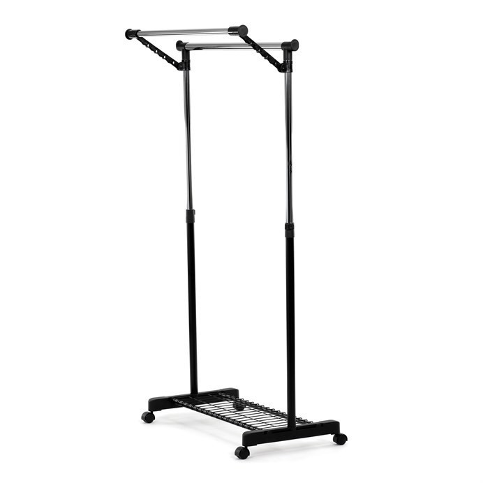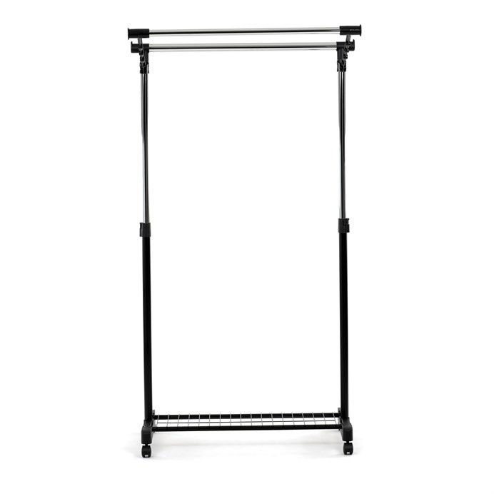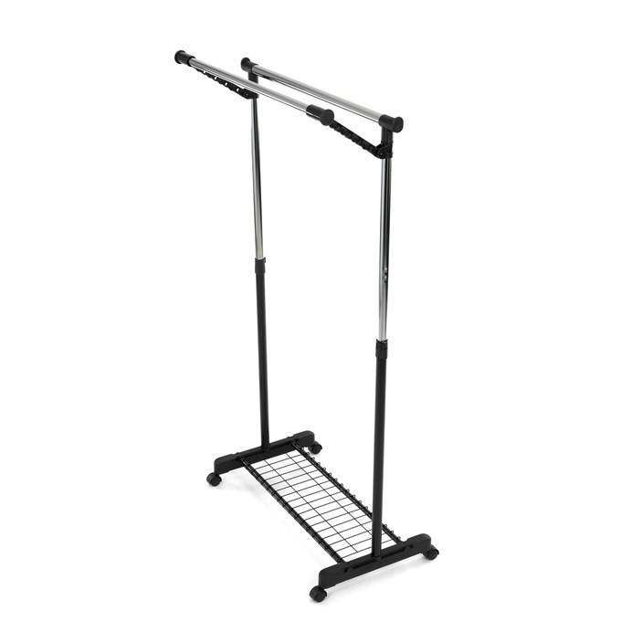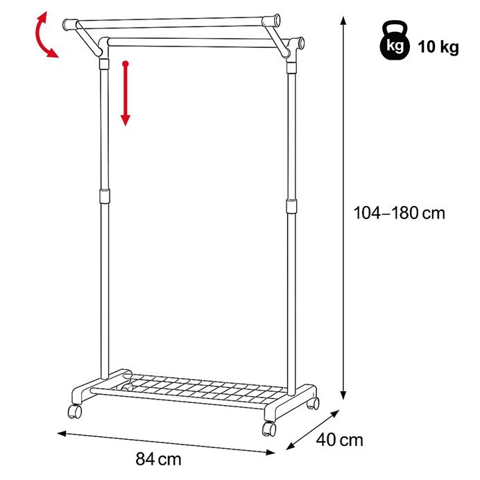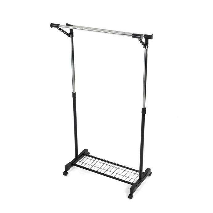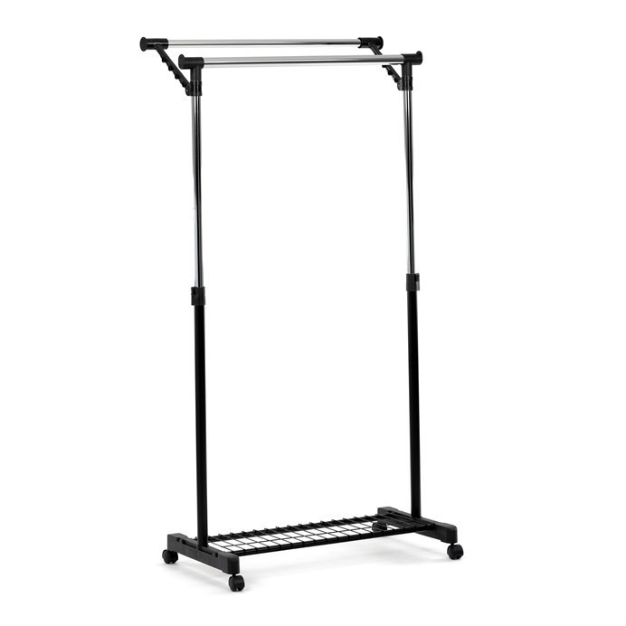 Mobilní stojan na šaty značky Autronic je praktickým řešením pro uložení oblečení v ložnici, šatně nebo předsíni. Černá kovová konstrukce doplněná chromovými detaily zajišťuje moderní vzhled a vysokou stabilitu. Díky nastavitelné výšce se snadno přizpůsobí vašim potřebám. Dolní mřížkovaná police poskytuje další úložný prostor, například na boty či tašky. Stojan je vybaven kolečky, což umožňuje snadnou manipulaci. Je ideálním doplňkem pro ty, kteří hledají flexibilitu a funkčnost spojenou s elegantním designem.