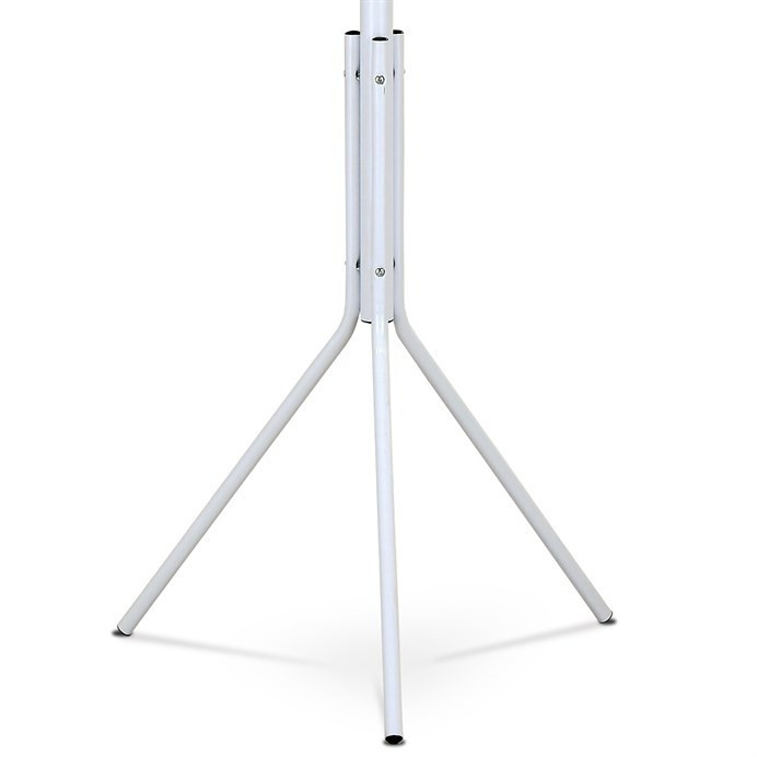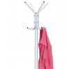 Stojanový věšák s výškou 174 cm je vyroben z pevného kovu s matným bílým lakem, který zajišťuje odolnost a snadnou údržbu. Nabízí šest háčků rozmístěných ve dvou úrovních pro pohodlné zavěšení kabátů, šál či tašek. Stabilní trojnohá základna přispívá k bezpečnému postavení i při plném zatížení, přičemž maximální nosnost dosahuje 6 kg. Jednoduchý a čistý design věšáku se hodí do moderních i klasických interiérů, kde poskytuje praktické řešení pro organizaci oděvů v předsíni nebo kanceláři.