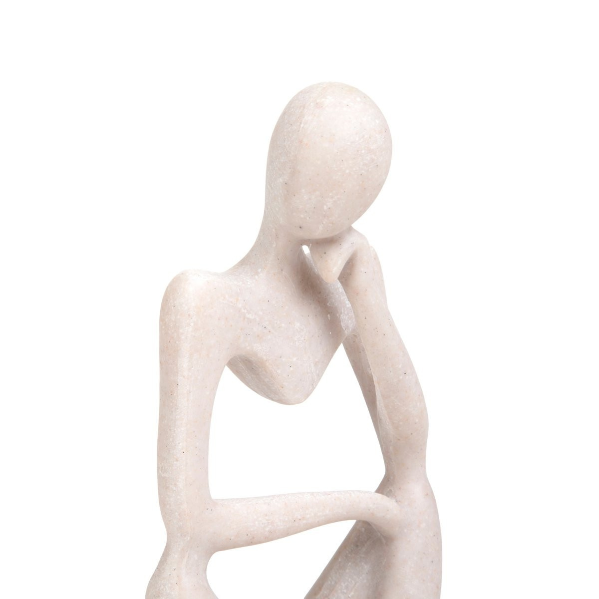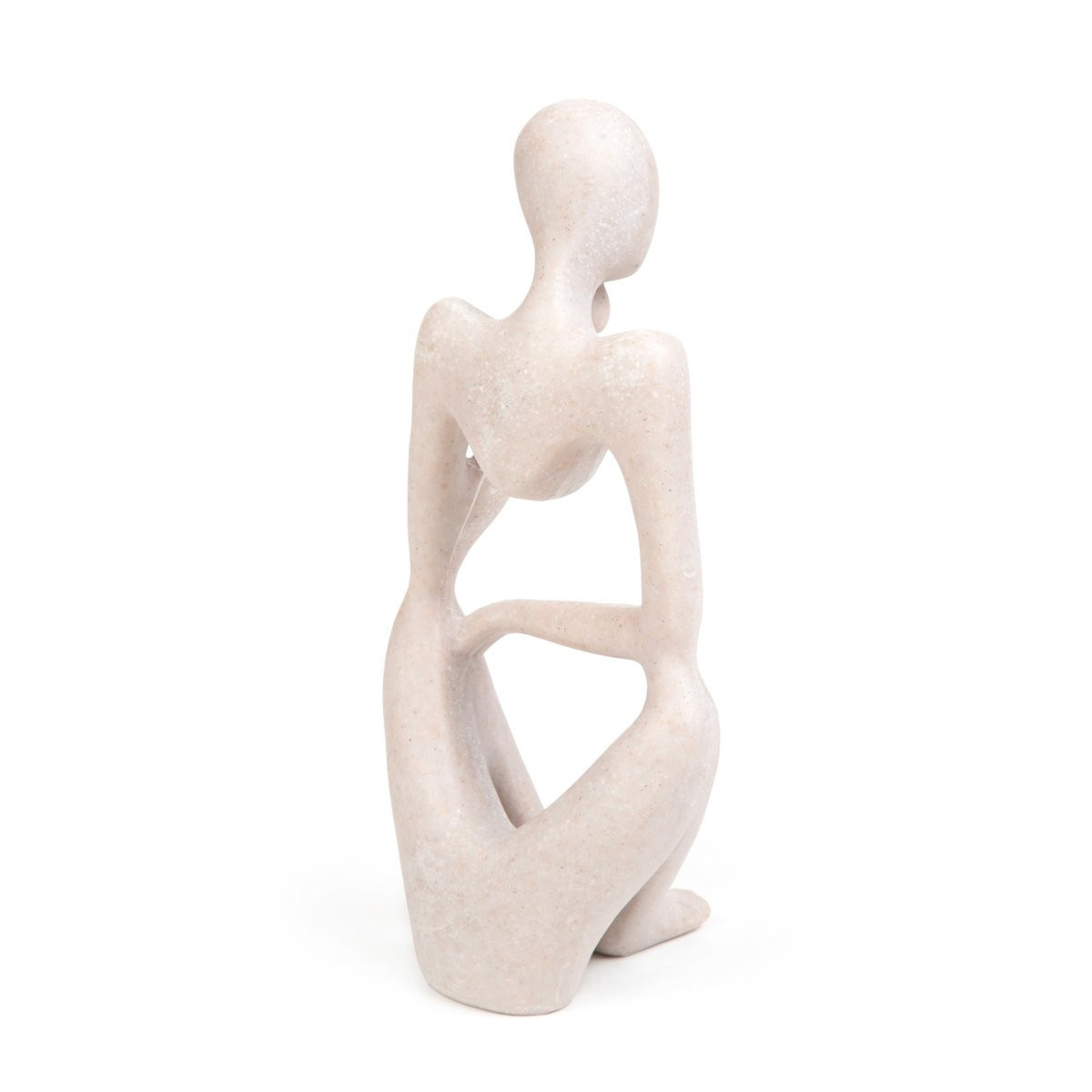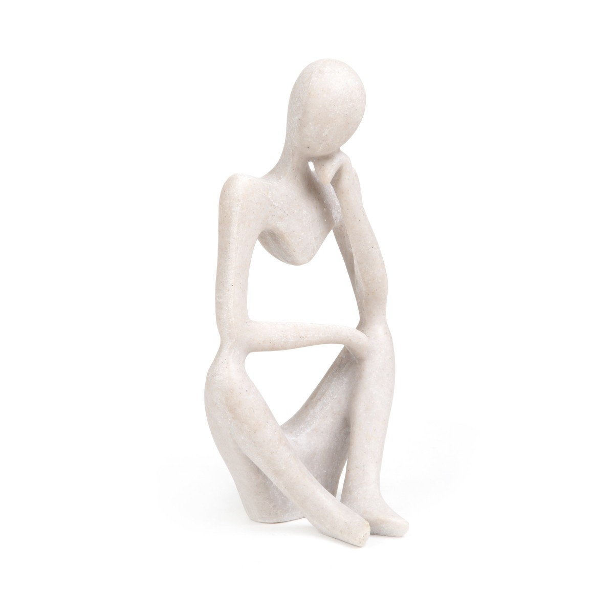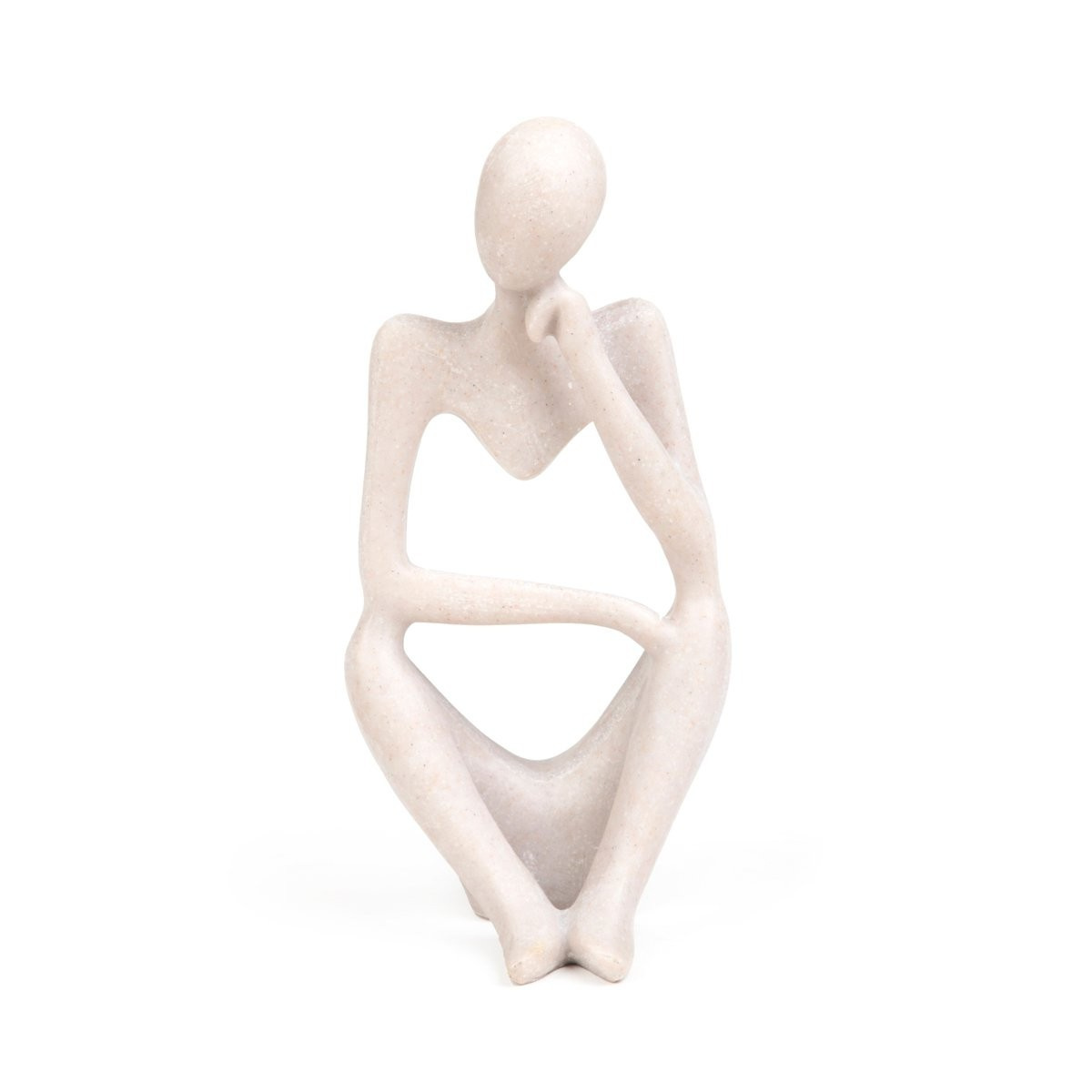 HOMLA ROCHE figurka ve tvaru sedícího myslitele. Myslitel je zobrazen v pozici, která často doprovází okamžiky hlubokého zamyšlení - jeho hlava je mírně nakloněná a spočívá na ruce, která slouží jako opora. Pozornost je věnována původní formě figurky, která je uprostřed dutá. Umístěte ji do jakékoliv místnosti a užijte si zajímavou interiérovou dekoraci.