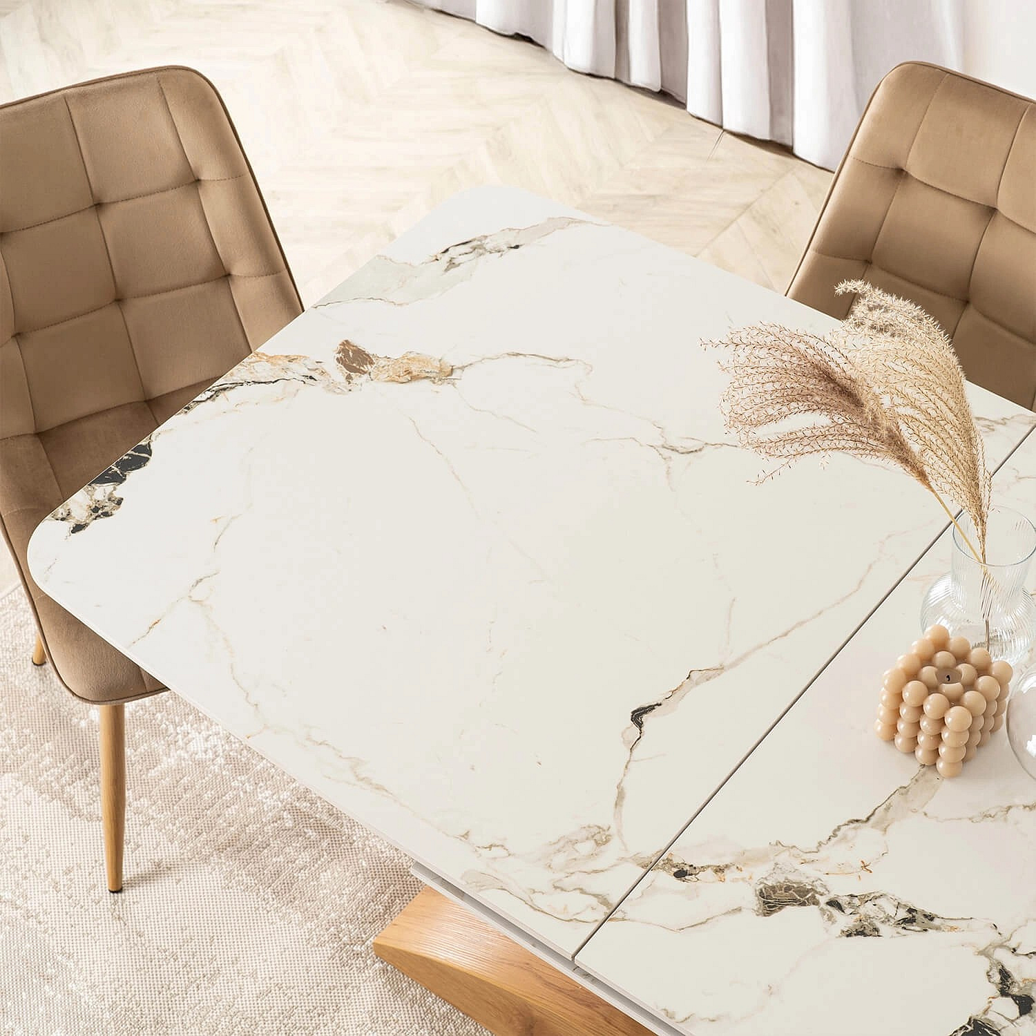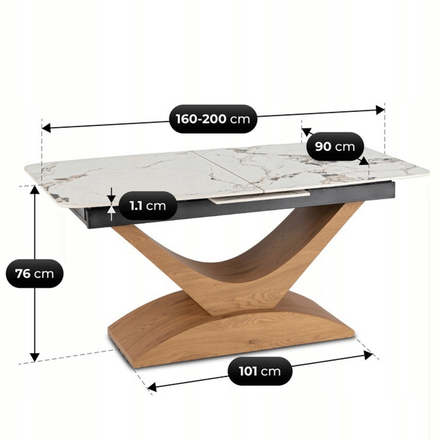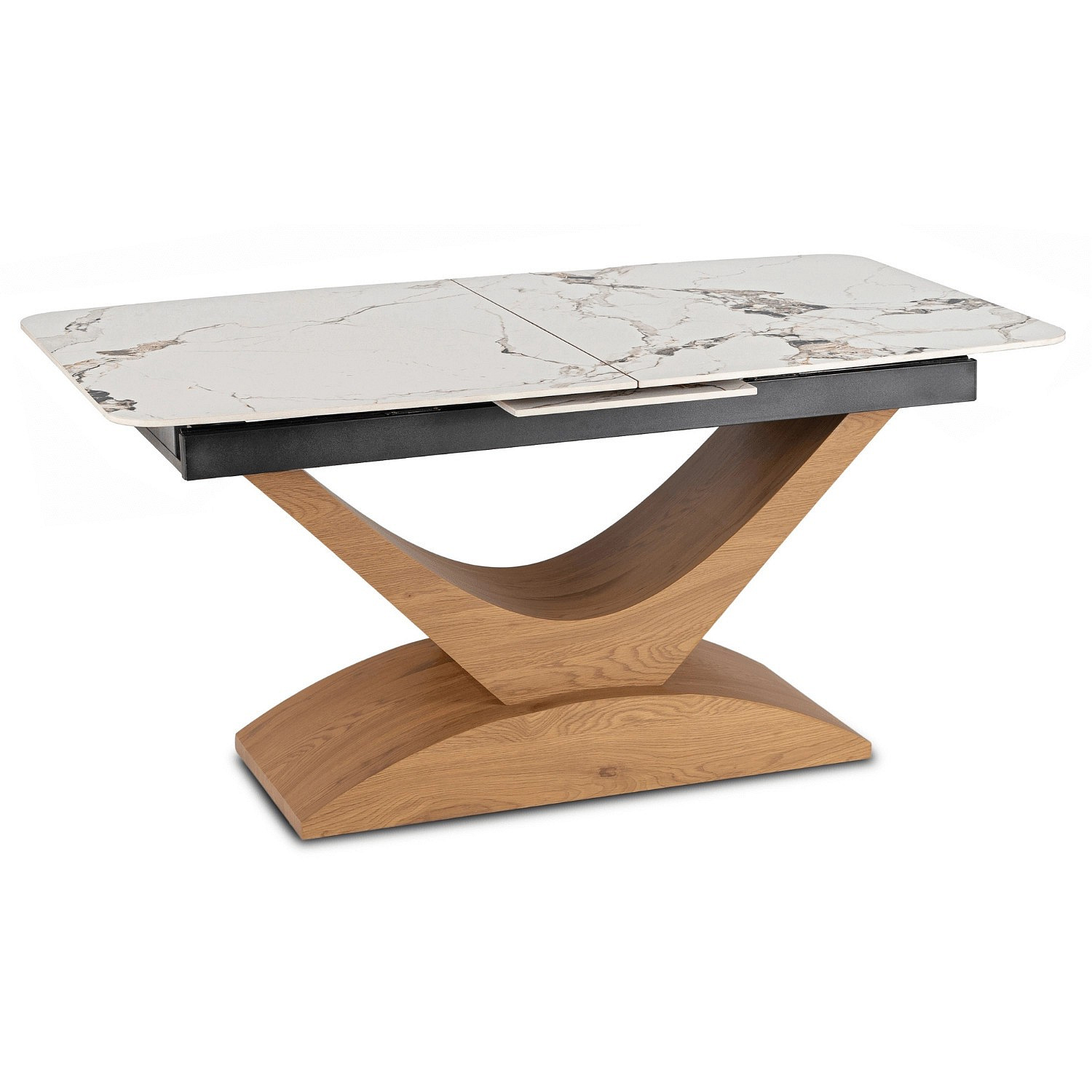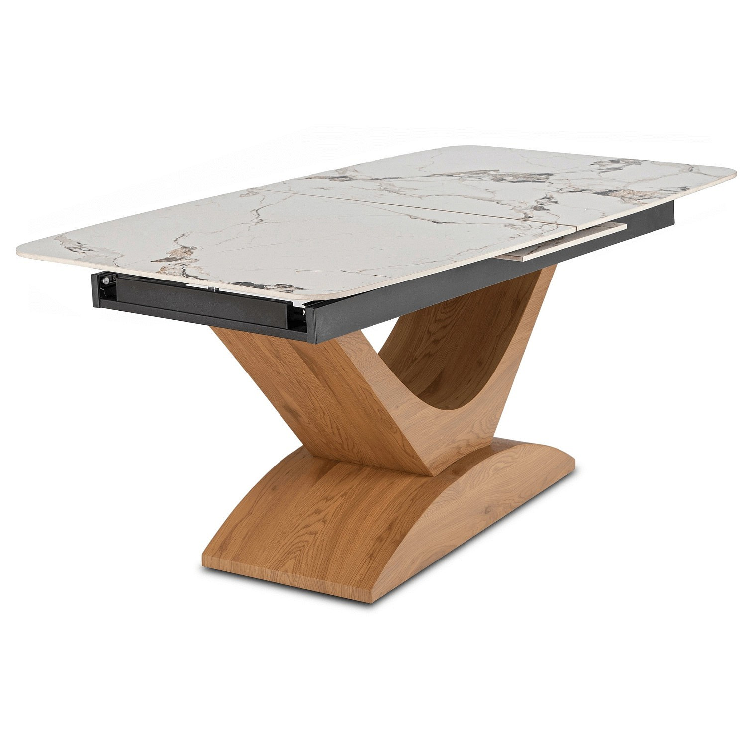 Stůl ALICANTE Keramický Rozkládací 160-200 cm Bílý Mramor/Dub