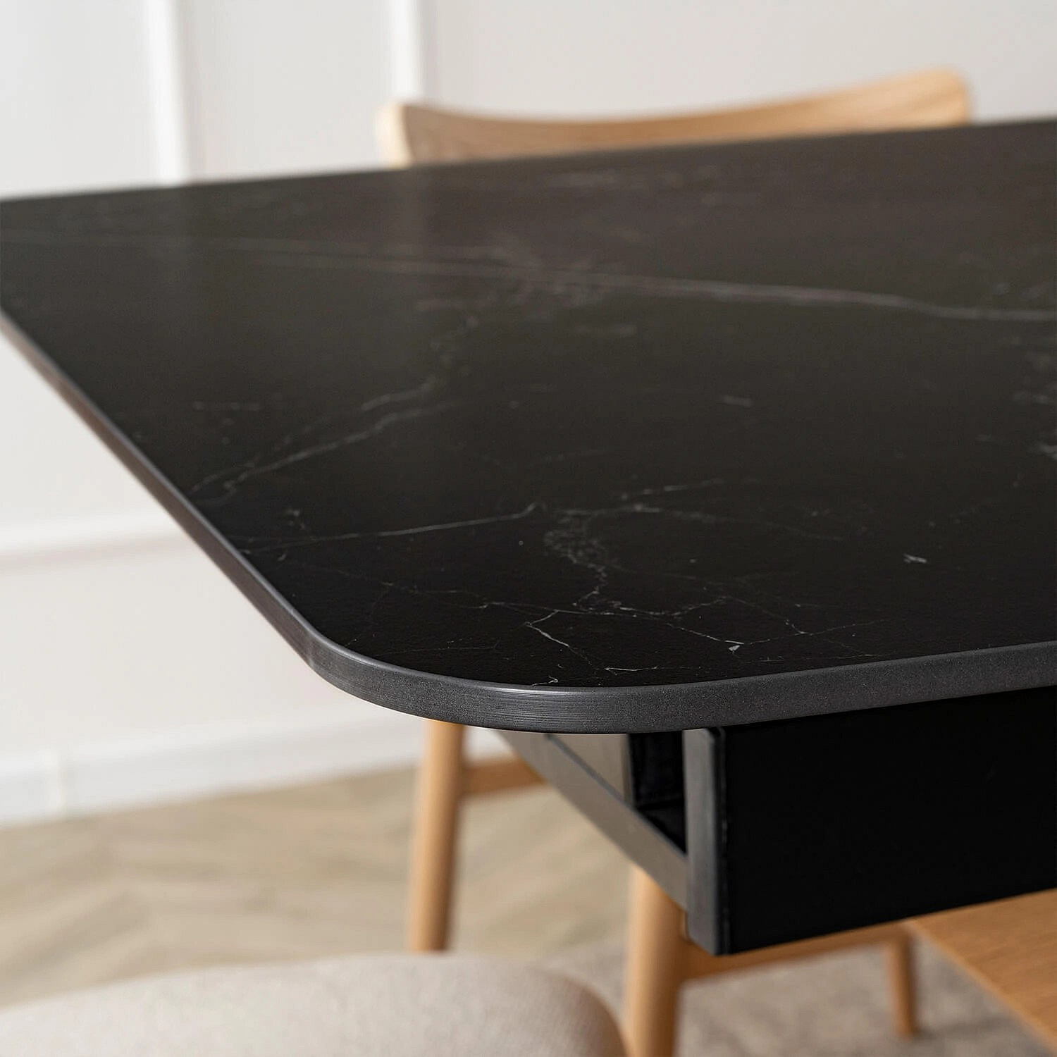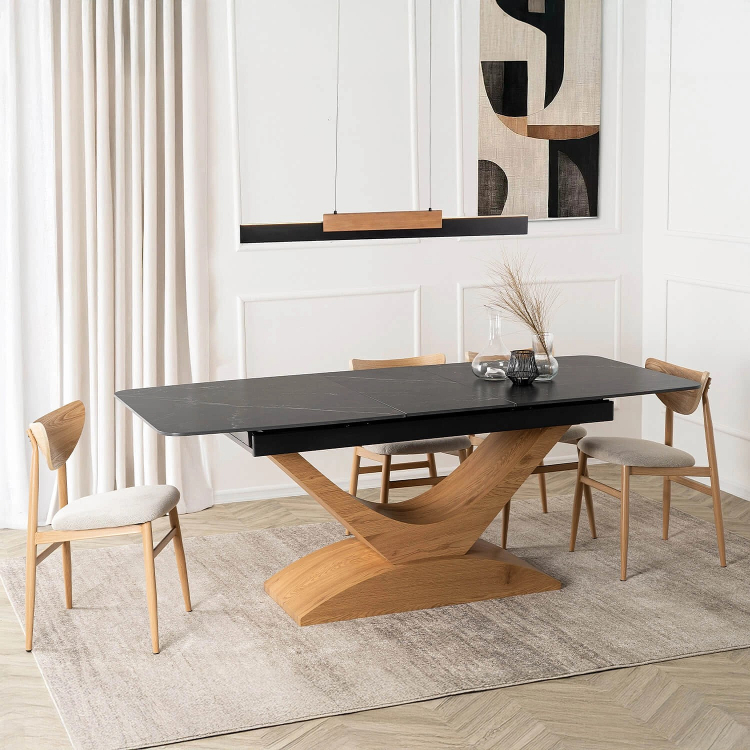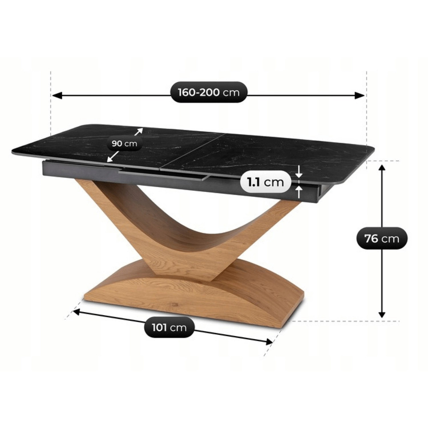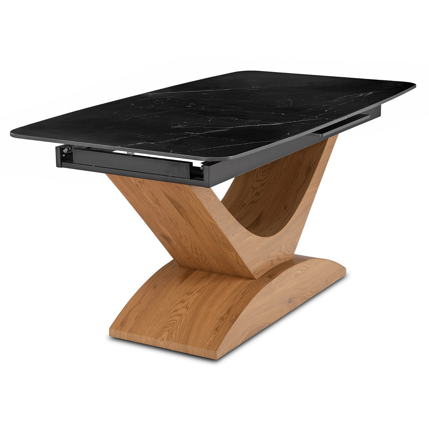 Stůl ALICANTE Keramický Rozkládací 160-200 cm Černý Mramor/Dub