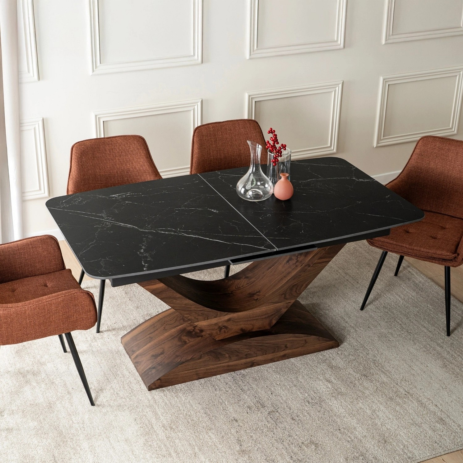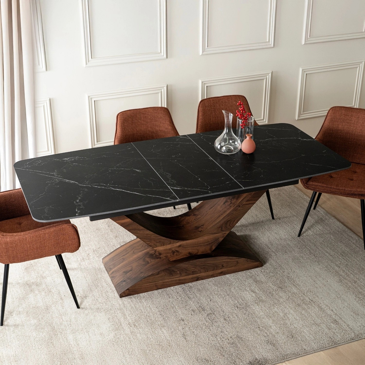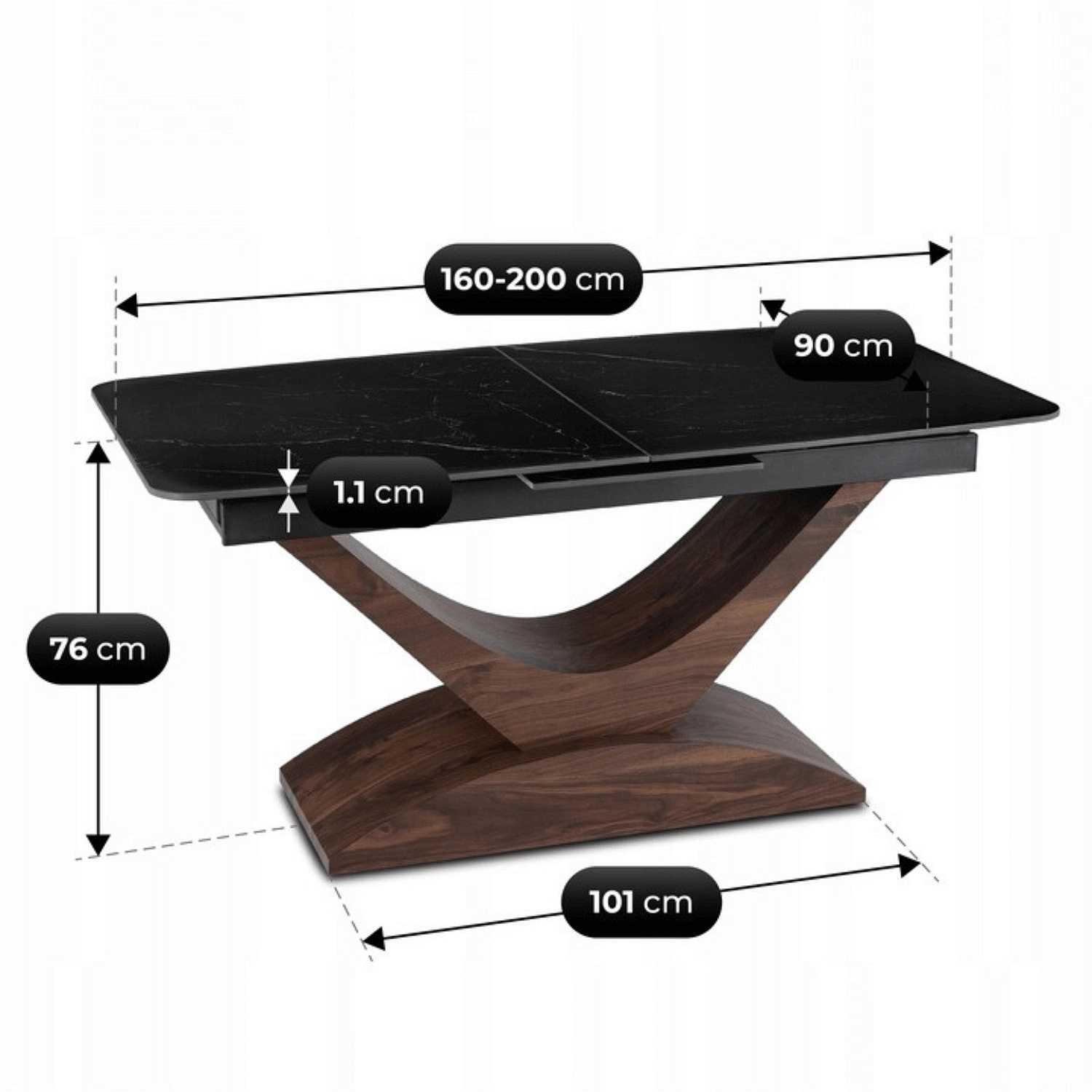 Stůl ALICANTE Keramický Rozkládací 160-200 cm Černý Mramor/Ořech
