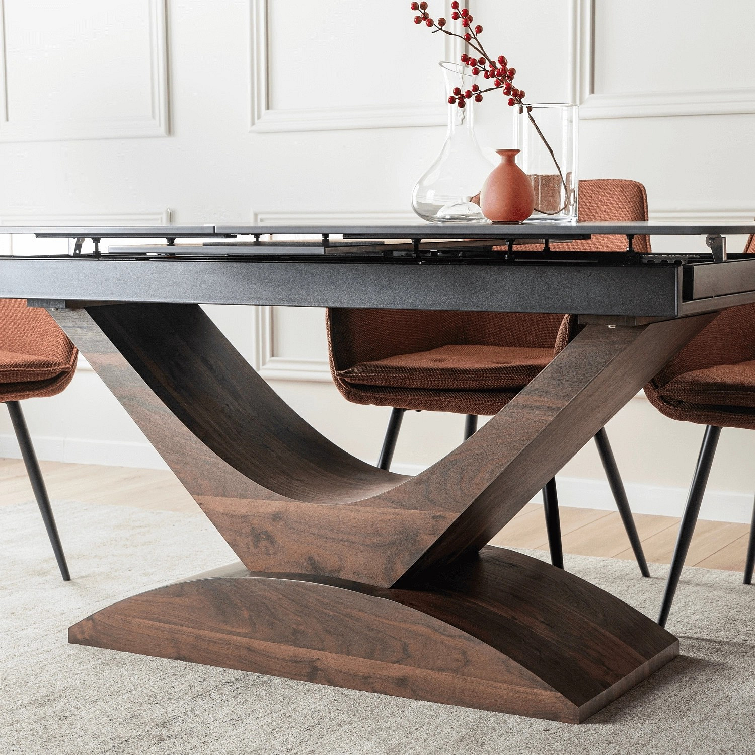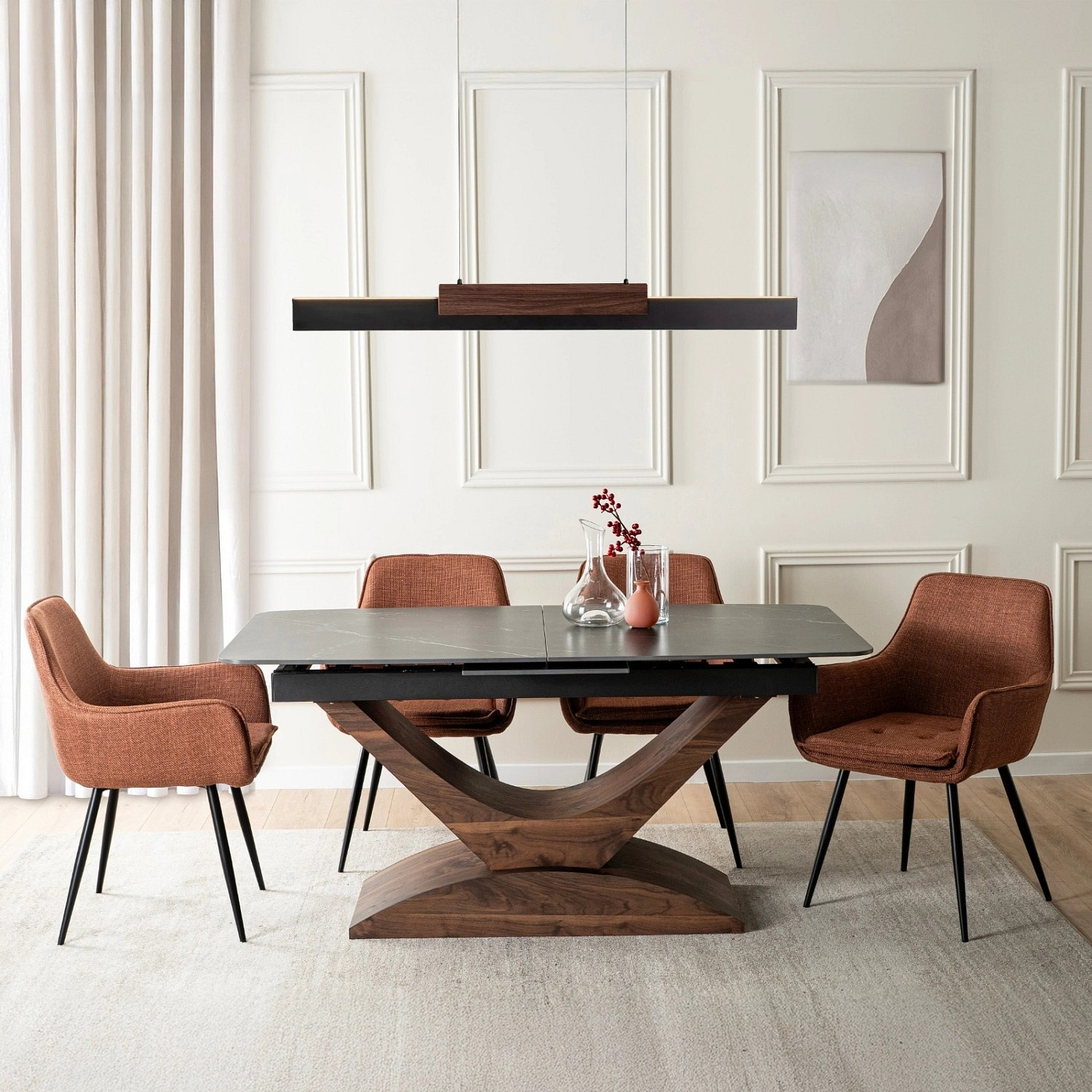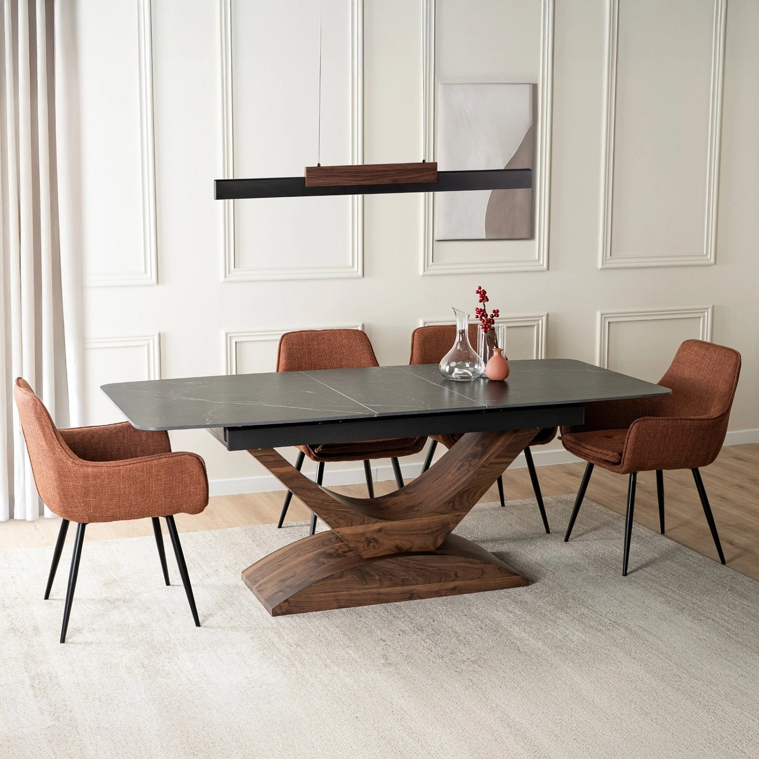 Stůl ALICANTE Keramický Rozkládací 160-200 cm Černý Mramor/Ořech