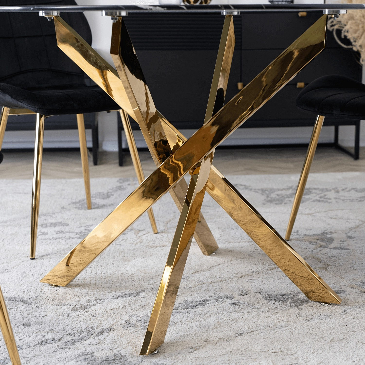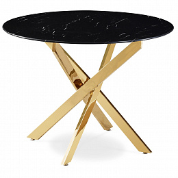 Stůl BALI Skleněný 100 cm Černý Mramor/Zlatý