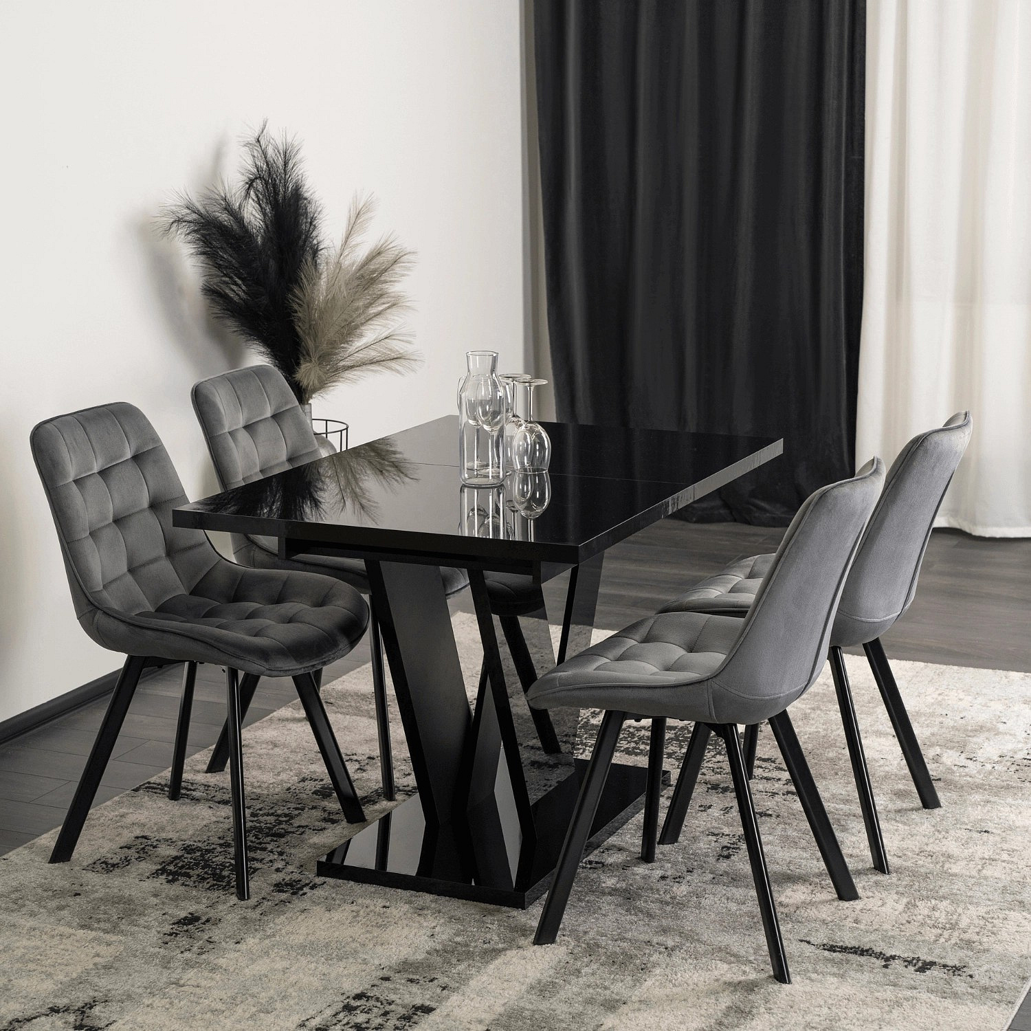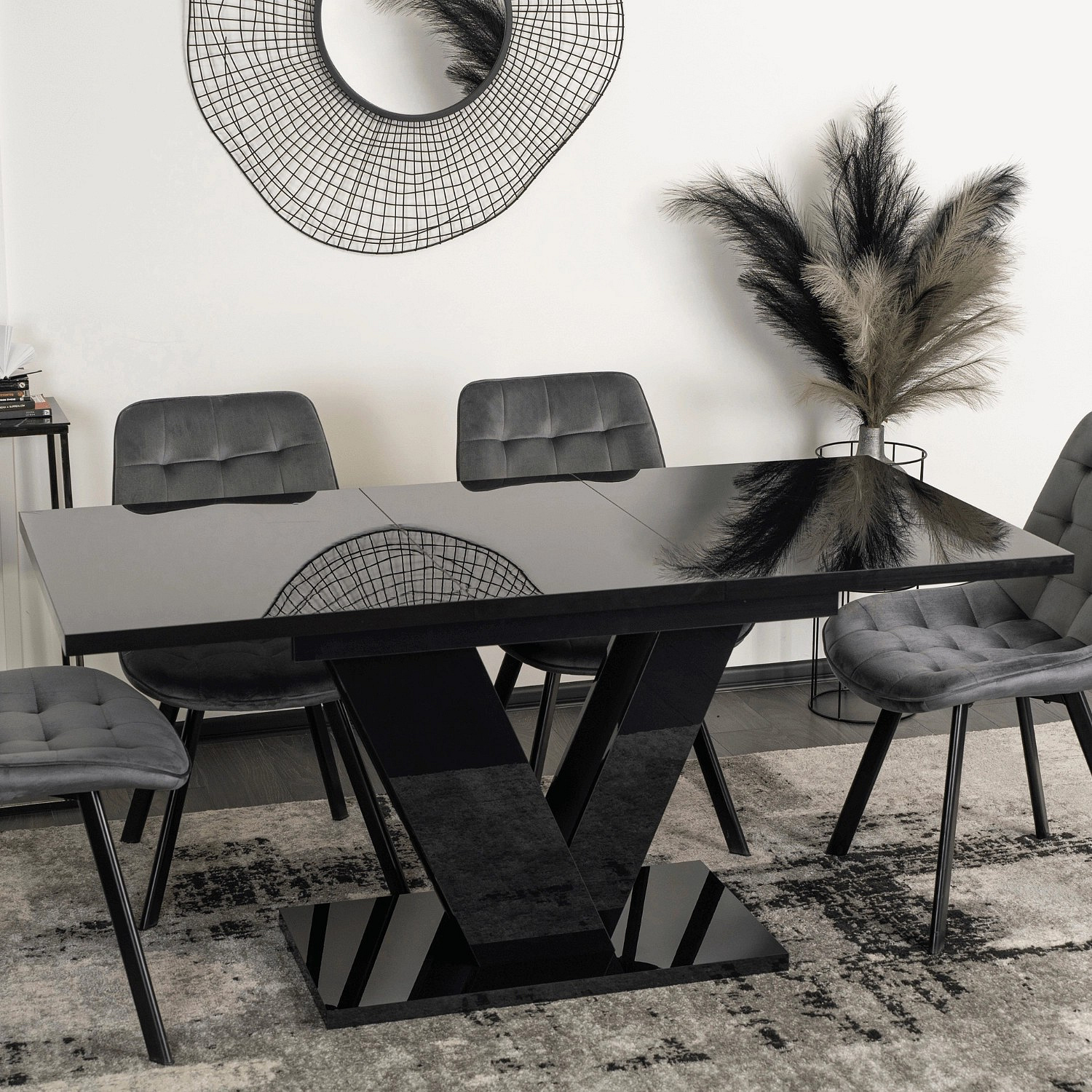 Stůl CLARK Rozkládací 120-160 cm Černý Lesk