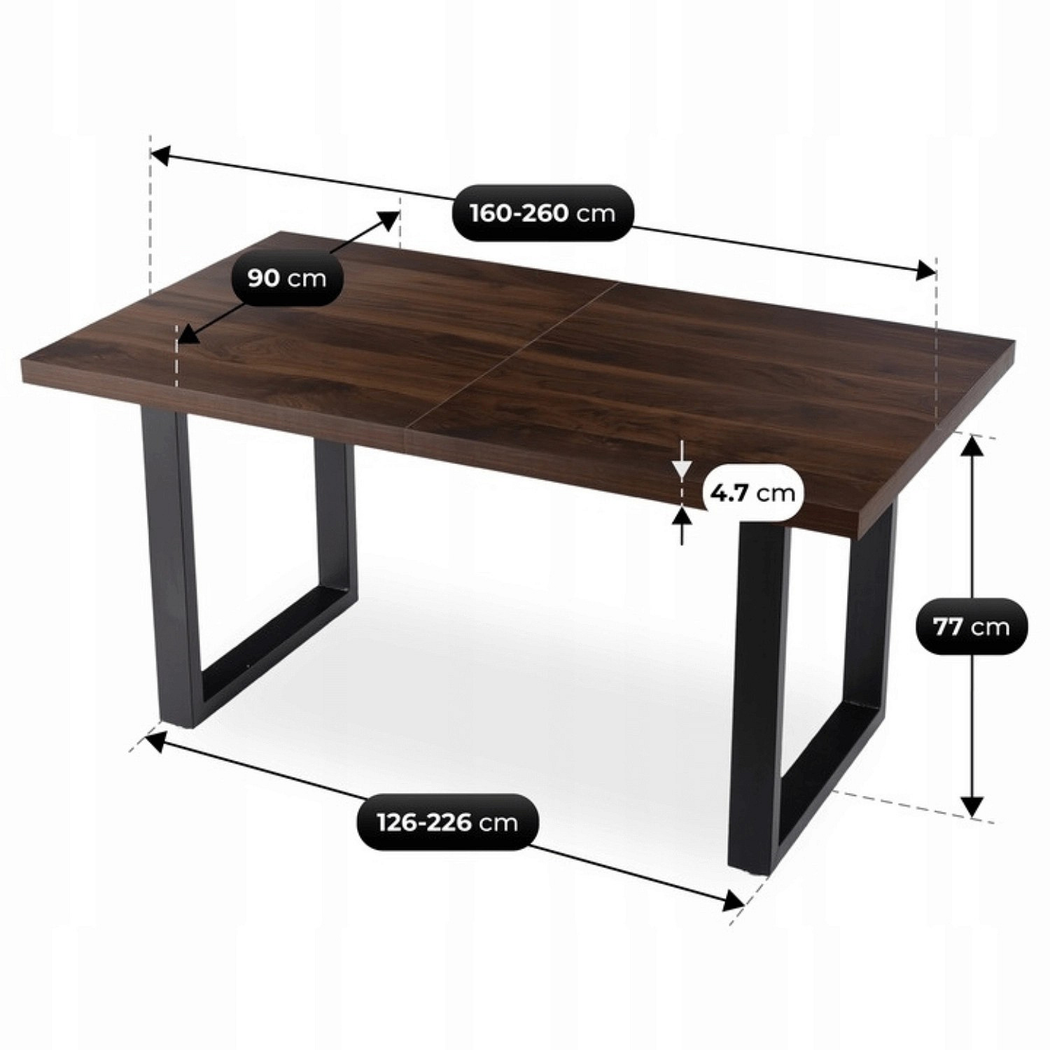 | Maksymalna długość stołu po rozłożeniu | 260 cm |
