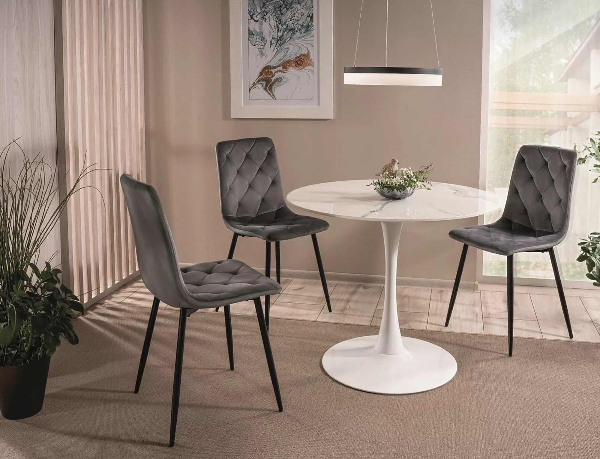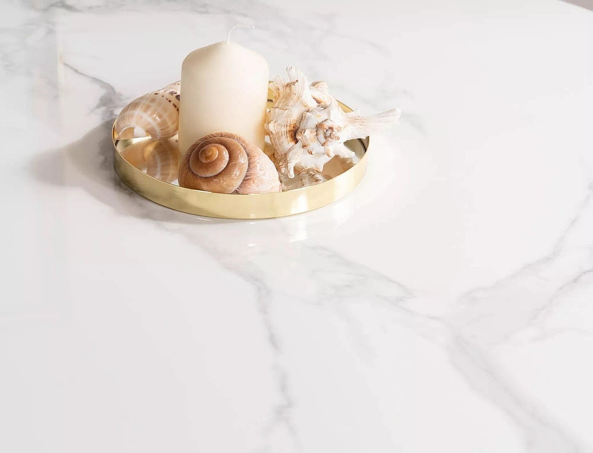 Jídelní stůl ESPERO, Calacatta ceremics/Bílý lesk
