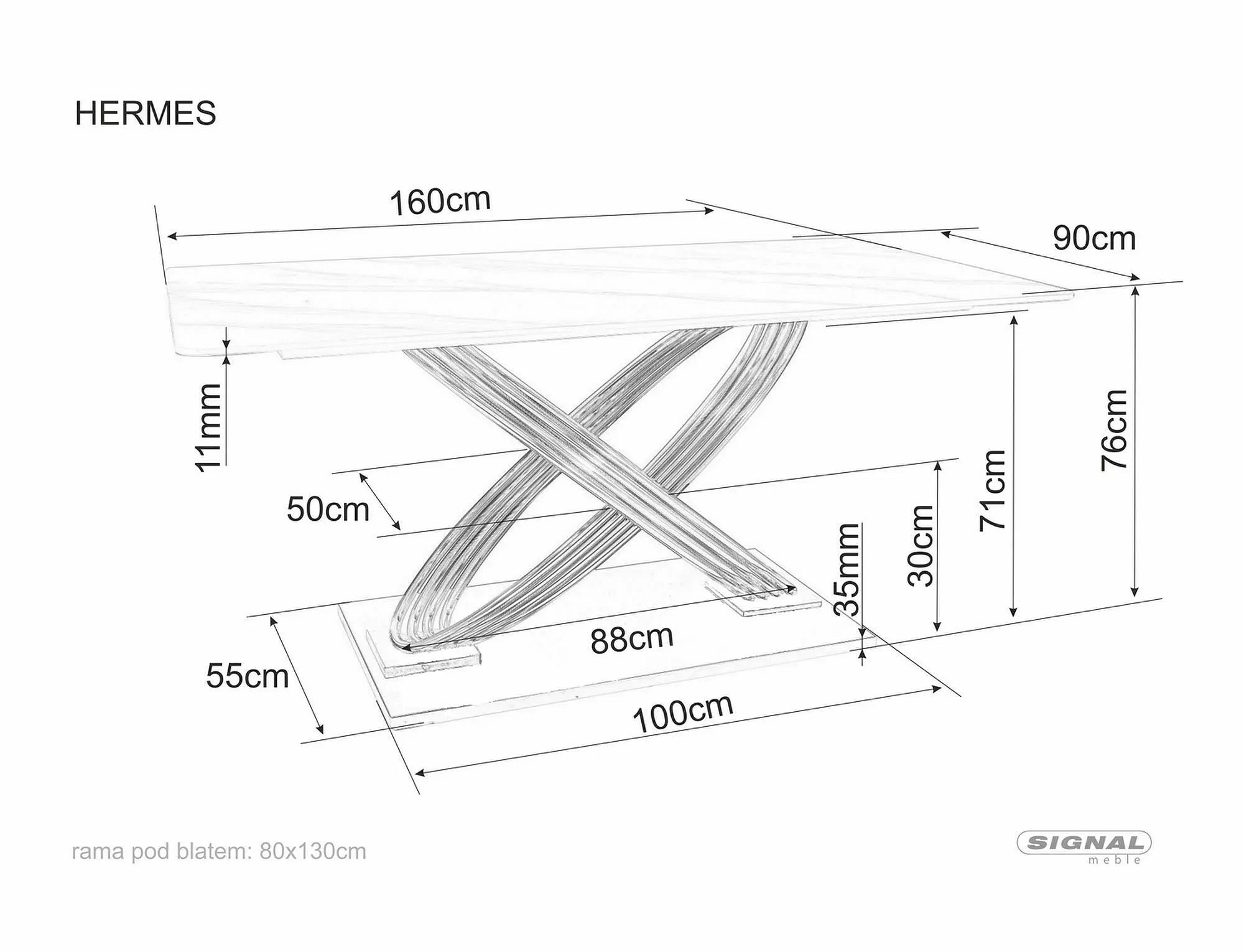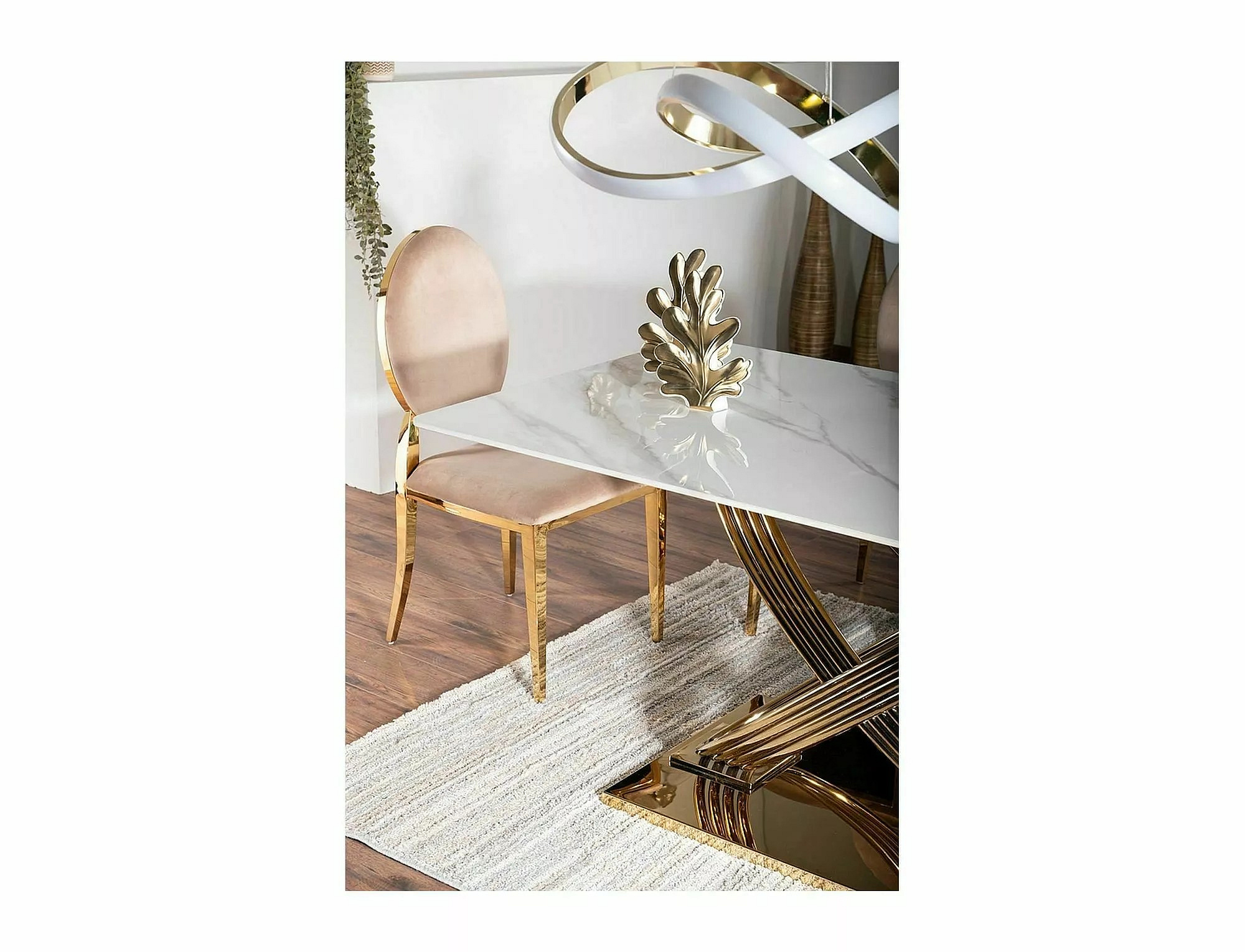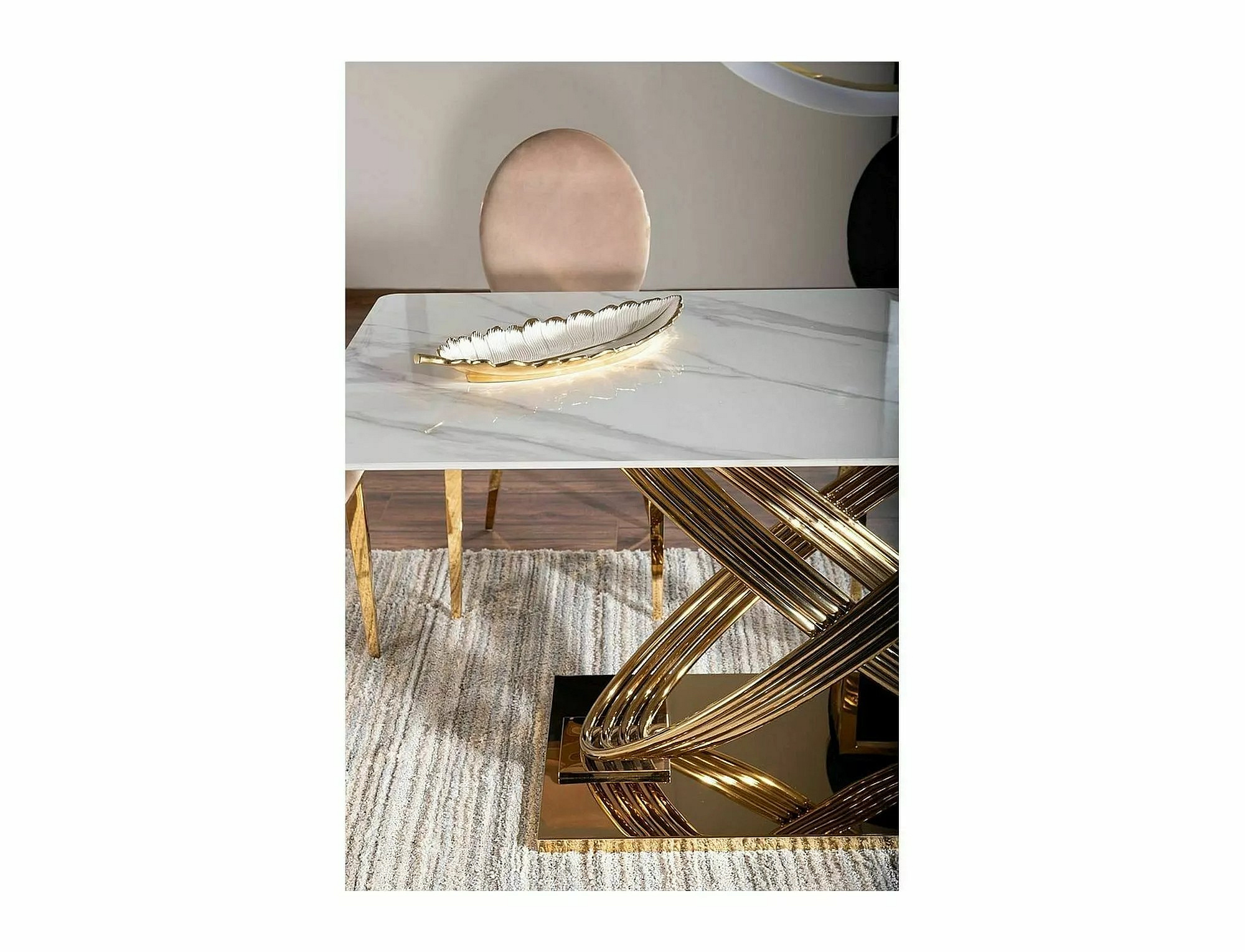Jídelní stůl HERMES, Efekt bílého mramoru/Zlatá
