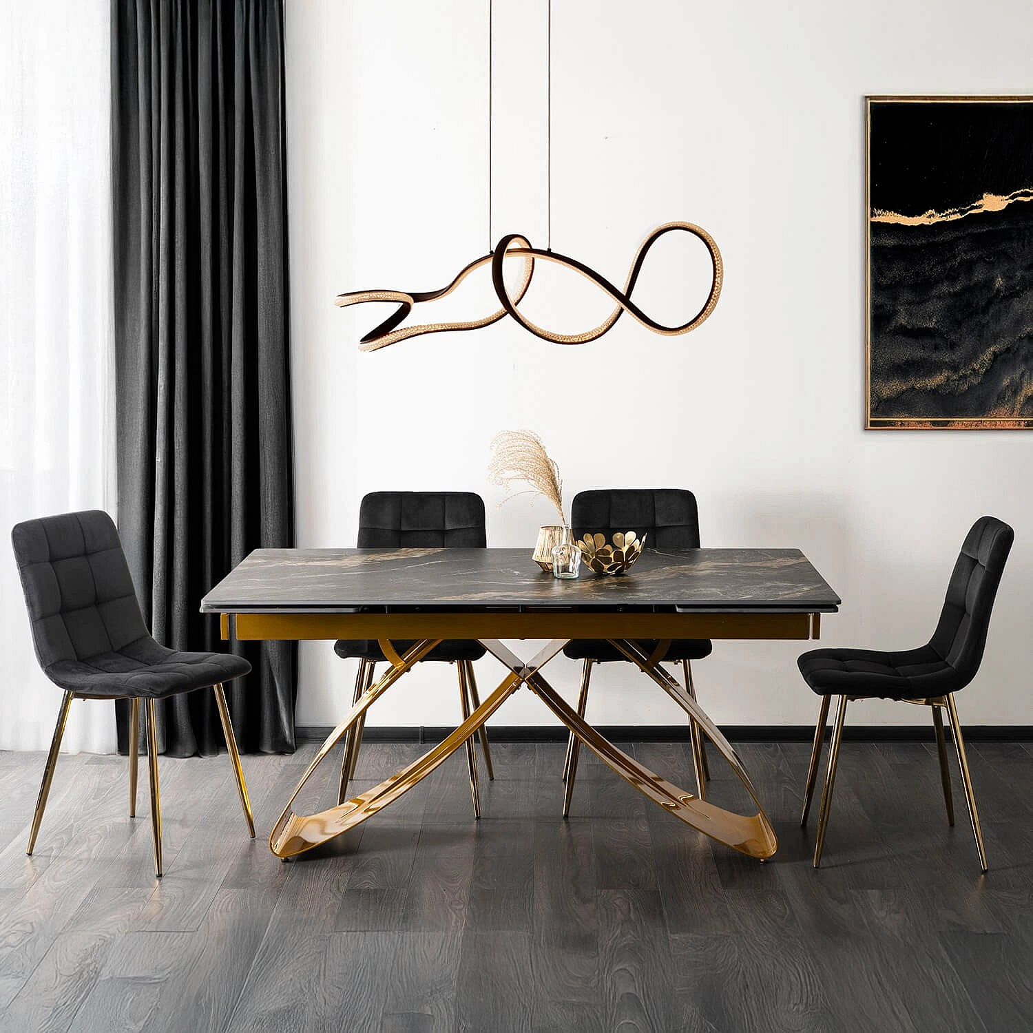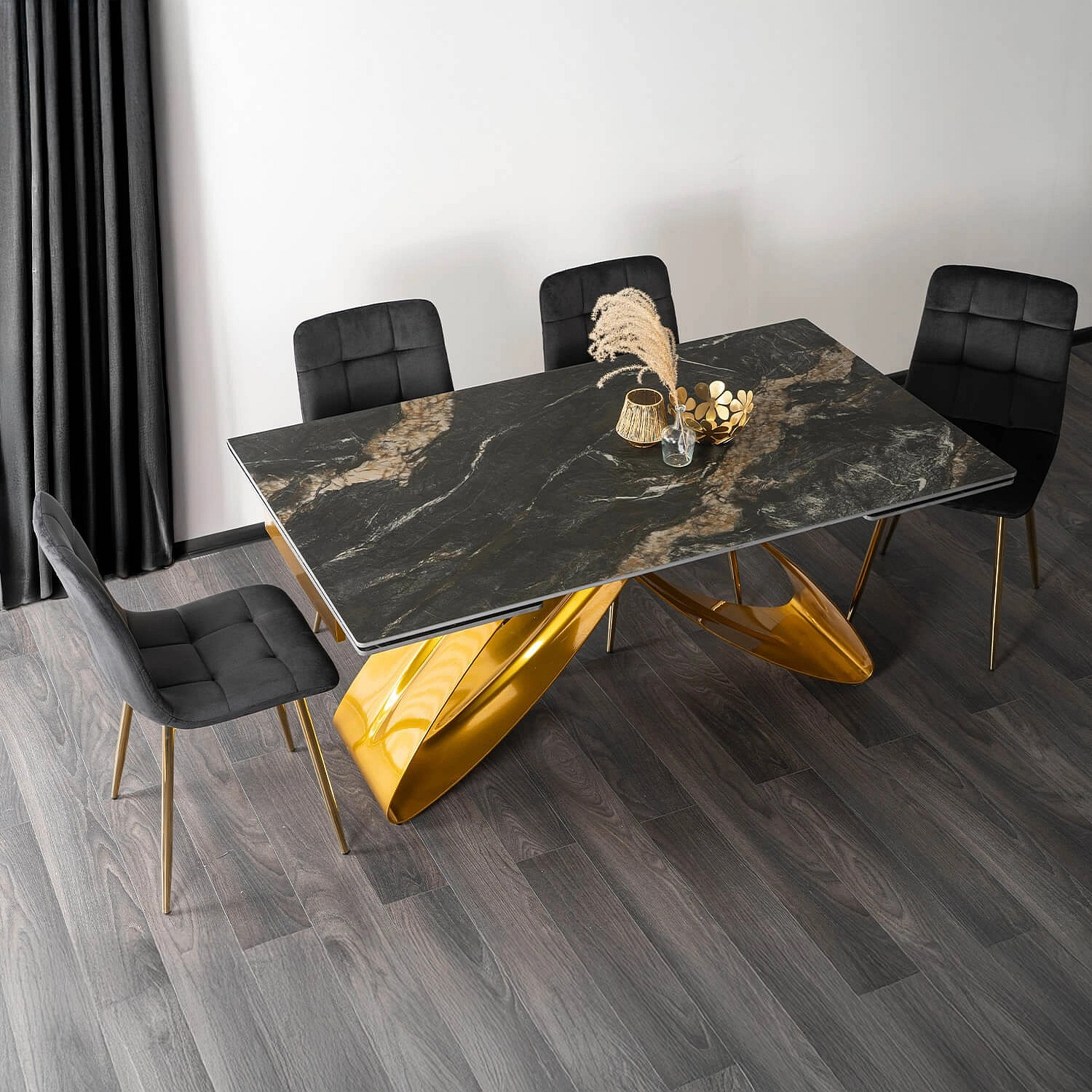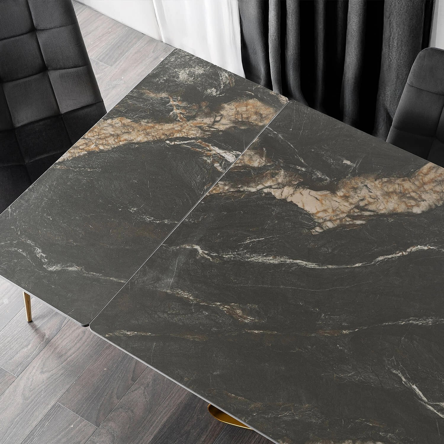 Stůl LUIGI Keramický Rozkládací 160-240 cm Černo-Zlatý Mramor/Zlatý