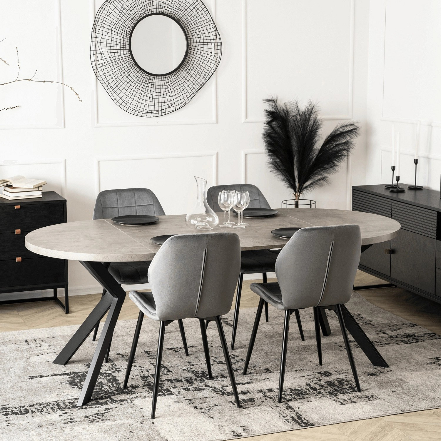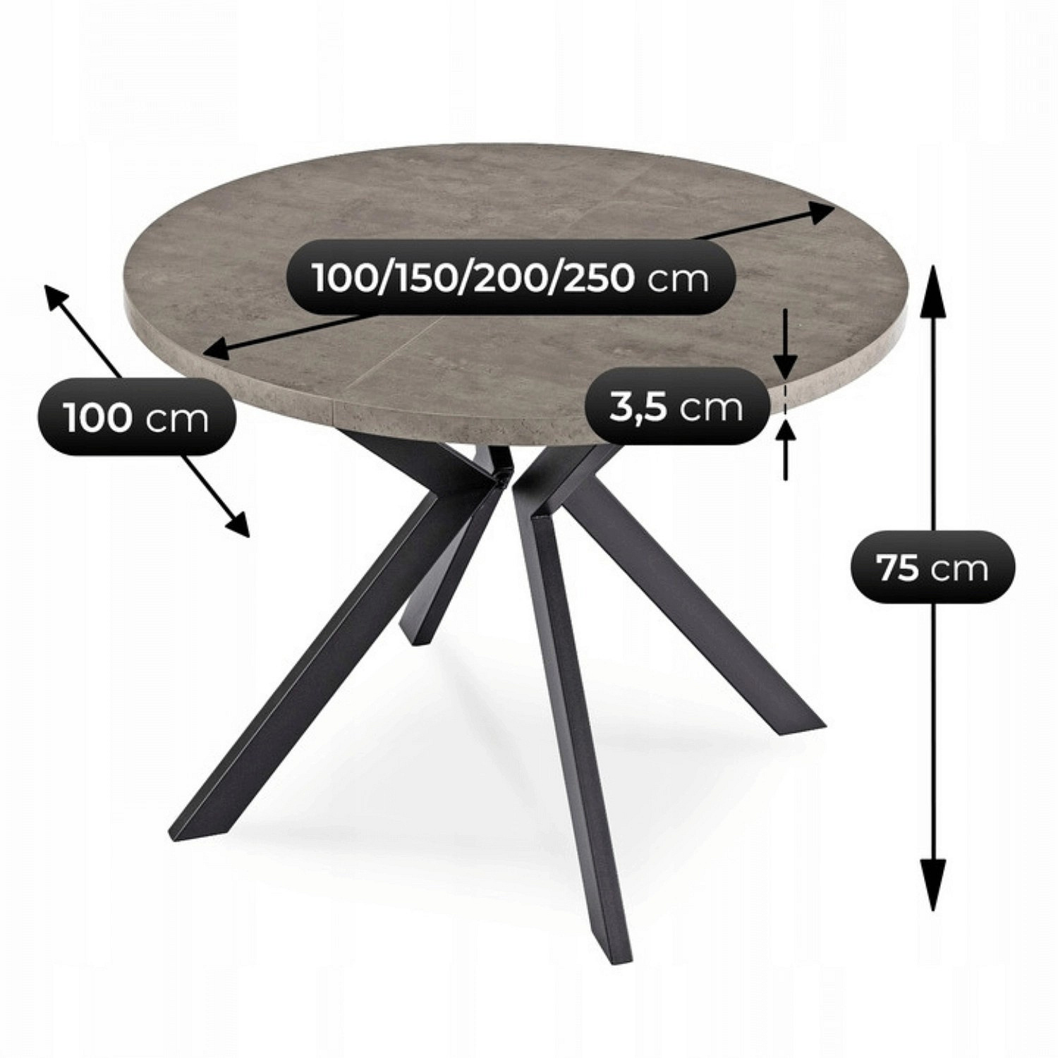 Stůl LUKAS Rozkládací 100-250 cm Beton/Černý