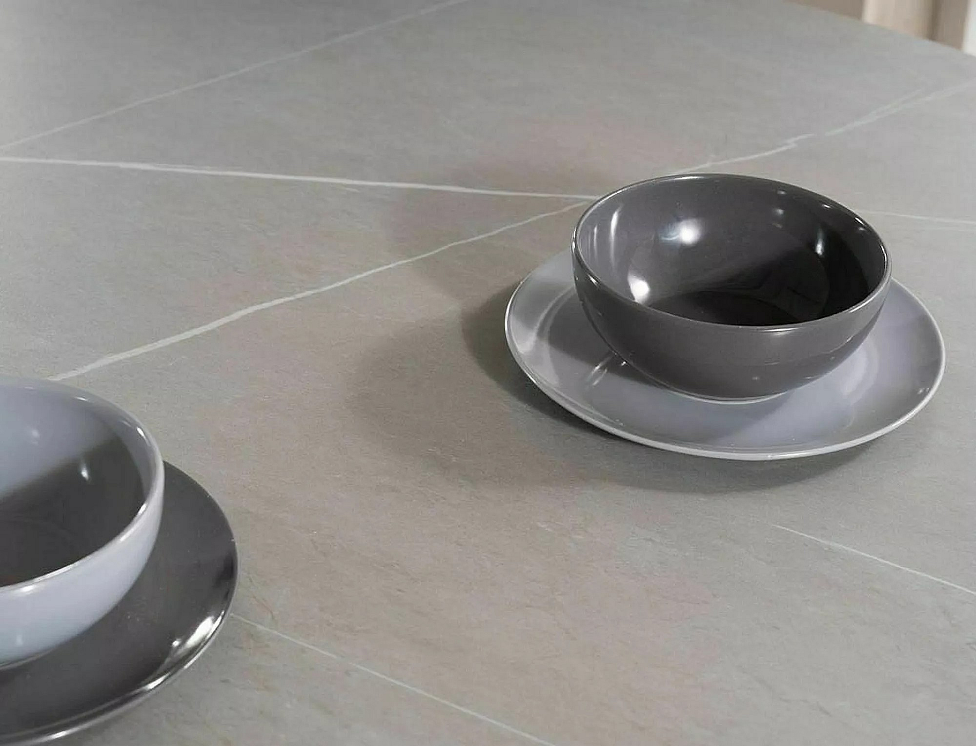 Jídelní stůl MURANO 120 cm, Efekt šedého mramoru/Černý mat