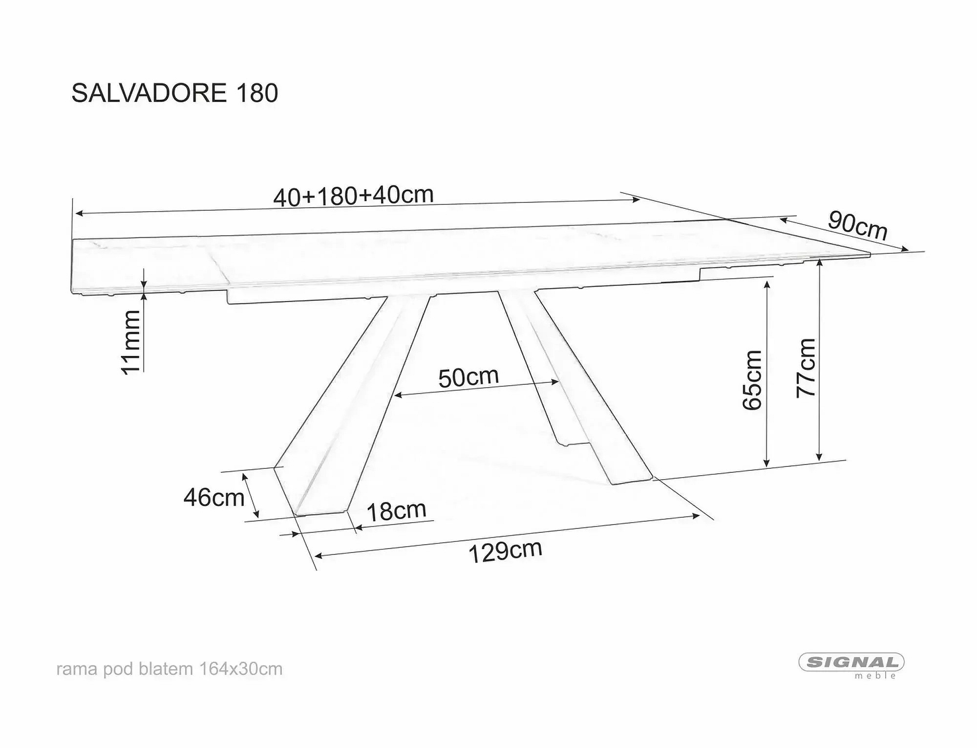 Jídelní stůl SALVADORE CERAMIC 180, šedý mat/Černý mat