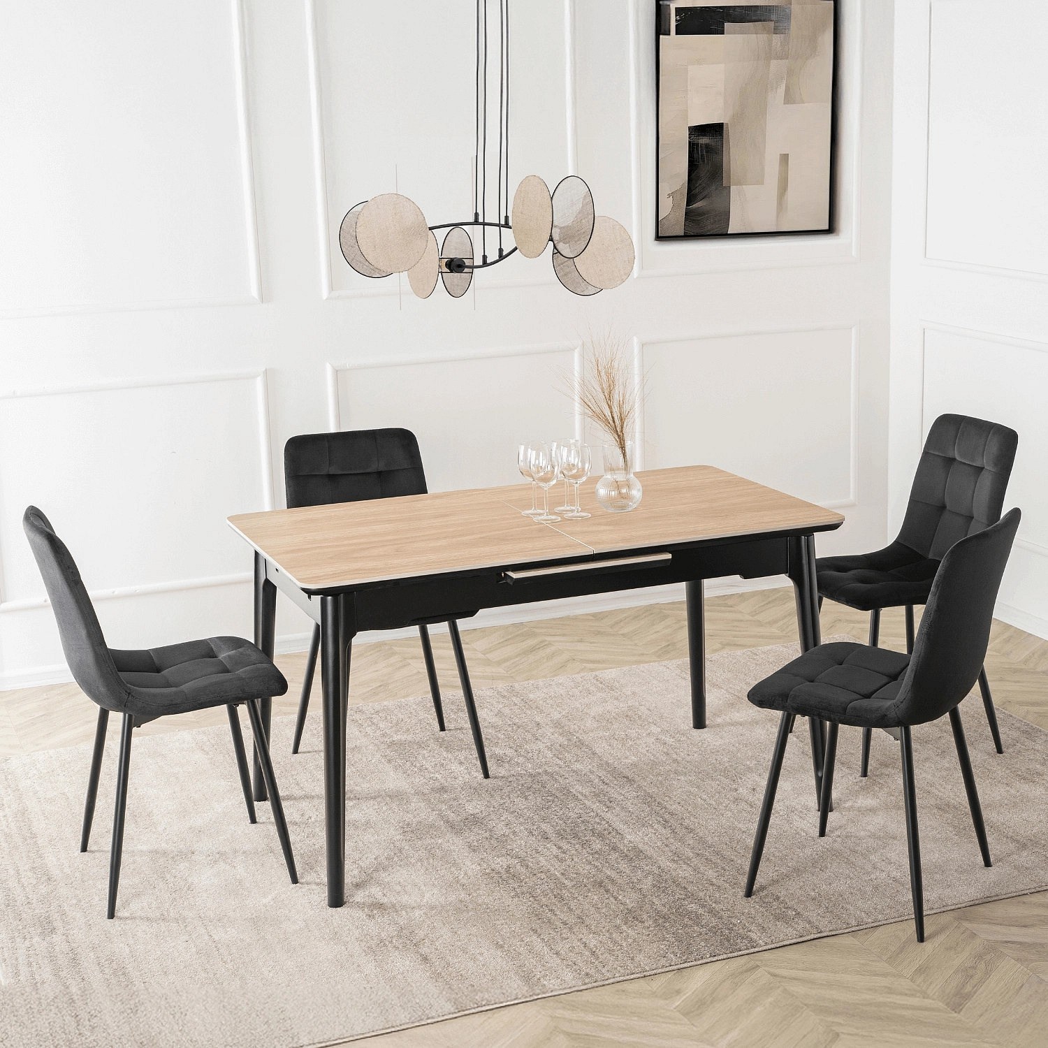 Stůl SAMER Rozkládací Keramický 120-160 cm Dub/Černý