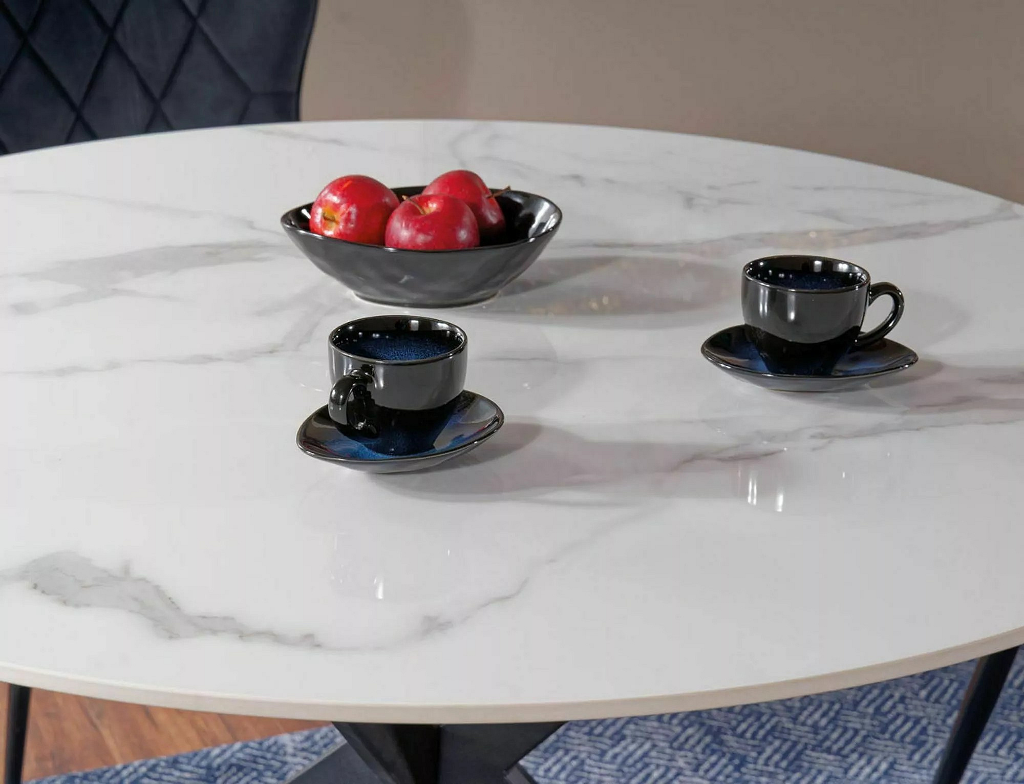 Jídelní stůl TALIA, efekt bílého mramoru/Černá