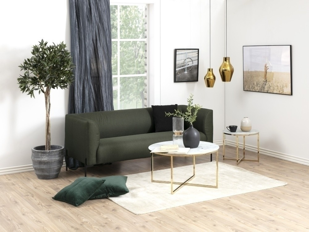 Konferenční stolek o průměru 50 cm Alisma se hodí do moderního interiéru. Díky kovové chromované základně ve zlaté barvě je stolek velmi ve stylu glamour. Deska stolu byla vyrobena z mléčného skla. Na spodní straně skla byla nalepena imitace bílého mramoru, která prosvítá skrz sklo. Tloušťka desky je 6 mm. Hmotnost: 5 kg. Rozměry kartonu: 8,8cm x 59cm x 57cm