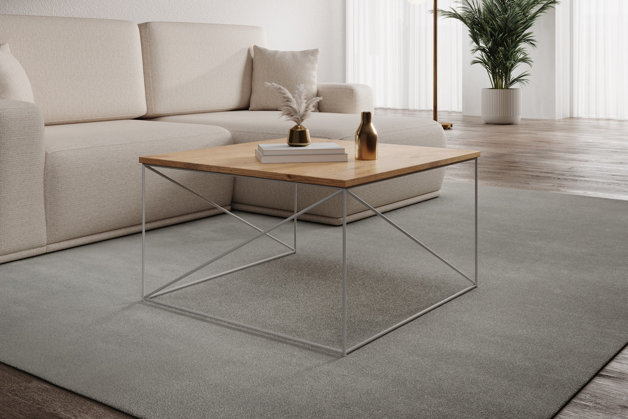Konferenční stolek Nelia je výjimečný prvek interiéru, který spojuje moderní design s funkčností. Jeho čtvercová deska, vyrobená z vysoce kvalitních materiálů, nabízí jak estetiku, tak trvanlivost. Deska je dostupná v různých povrchových úpravách, což umožňuje ideální přizpůsobení každému stylu interiéru, od minimalistického po industriální.Základna stolku Nelia je vyrobena z drátu, což mu dodává lehkost a jemnost. Navzdory své jemné konstrukci je základna výjimečně stabilní a pevná. Geometrický tvar základny dodává stolku moderní charakter a činí ho centrálním bodem každého obývacího pokoje.Nelia je vynikající volbou pro ty, kteří si cení elegantních a funkčních řešení ve svém domově. Tento stolek se skvěle hodí jak do malých, tak i velkých prostor, vnášejíc do nich špetku stylu a rafinovanosti.