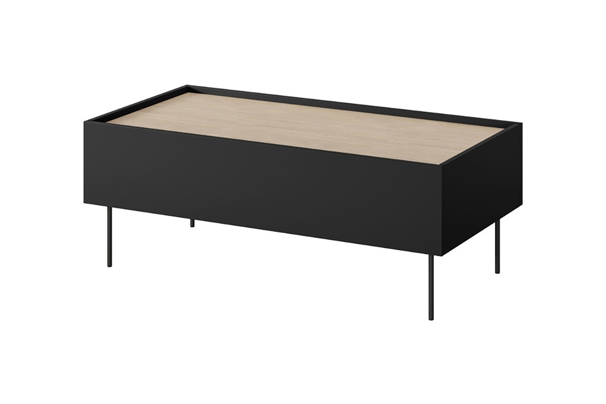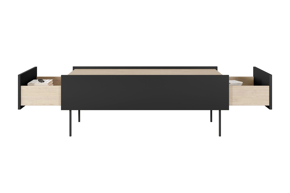 Konferenční stolek se 2 zásuvkami Desin 120 cm - černý mat / dub nagano, šířka: 120, výška: 45, hloubka: 60, výška nohou: 20