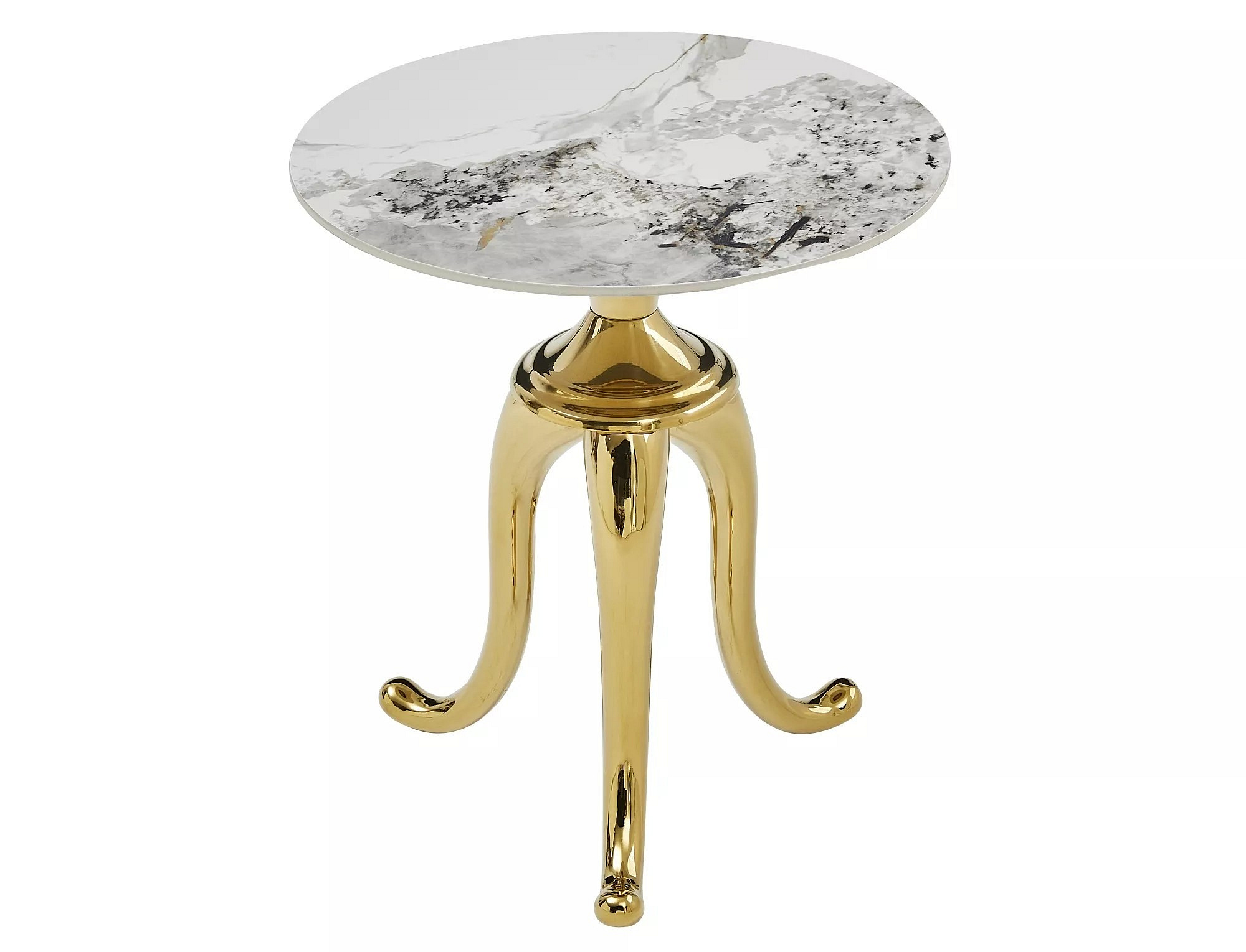 Konferenční stůl SNAKE, Efekt bílého mramoru/Zlatá