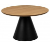 Kulatý konferenční stolek Soli, deska vyrobená z MDF a matná dubová dýha lakovaná, základna stolku je matná černá ocel lakovaná práškovou barvou. Kulatá deska dokonale ladí s kulatou základnou, čímž vytváří moderní konferenční stolek, který zaujme hosty. Spojení lakovaného povrchu s dubovou dýhou a černou ocelovou základnou zajišťuje moderní atmosféru. Rozměry kartonů: 70x70x7 cm a 44x44x49 cm. Vyžaduje montáž