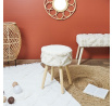 Dřevěná stolička ve stylu boho s borovicovými nohami je vybavena měkkým ozdobným sedákem v krémové barvě. Sedák byl vyplněn měkkou čalounickou pěnou. Ozdobné vzory stoličky ladí s ostatním nábytkem z kolekce Bali. Max. zatížení: 110 kg