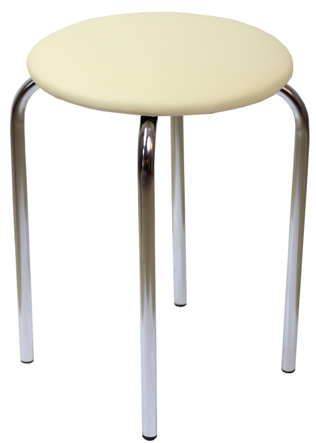 Materiál: hladká ekokůže, chrom. Barva béžová. Rozměry: - průměr sedáku: 35 cm - celková výška: 49 cm