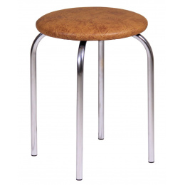 Materiál: ekokůže, chrom. Barva ořech. Rozměry: - průměr sedáku: 35 cm - celková výška: 49 cm