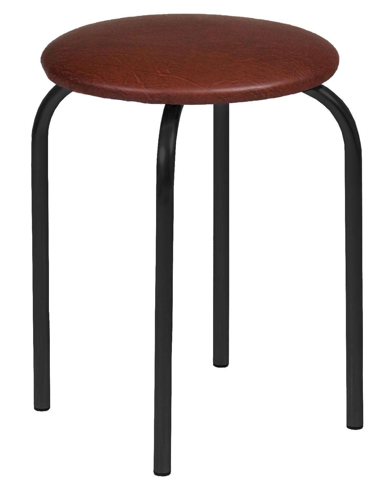 Rozměry: - průměr sedáku: 35 cm - celková výška: 49 cm Materiál - čalounění: ekokůže - konstrukce: kov s práškovým nástřikem Barva: - sedák: tmavě hnědá - konstrukce: černá