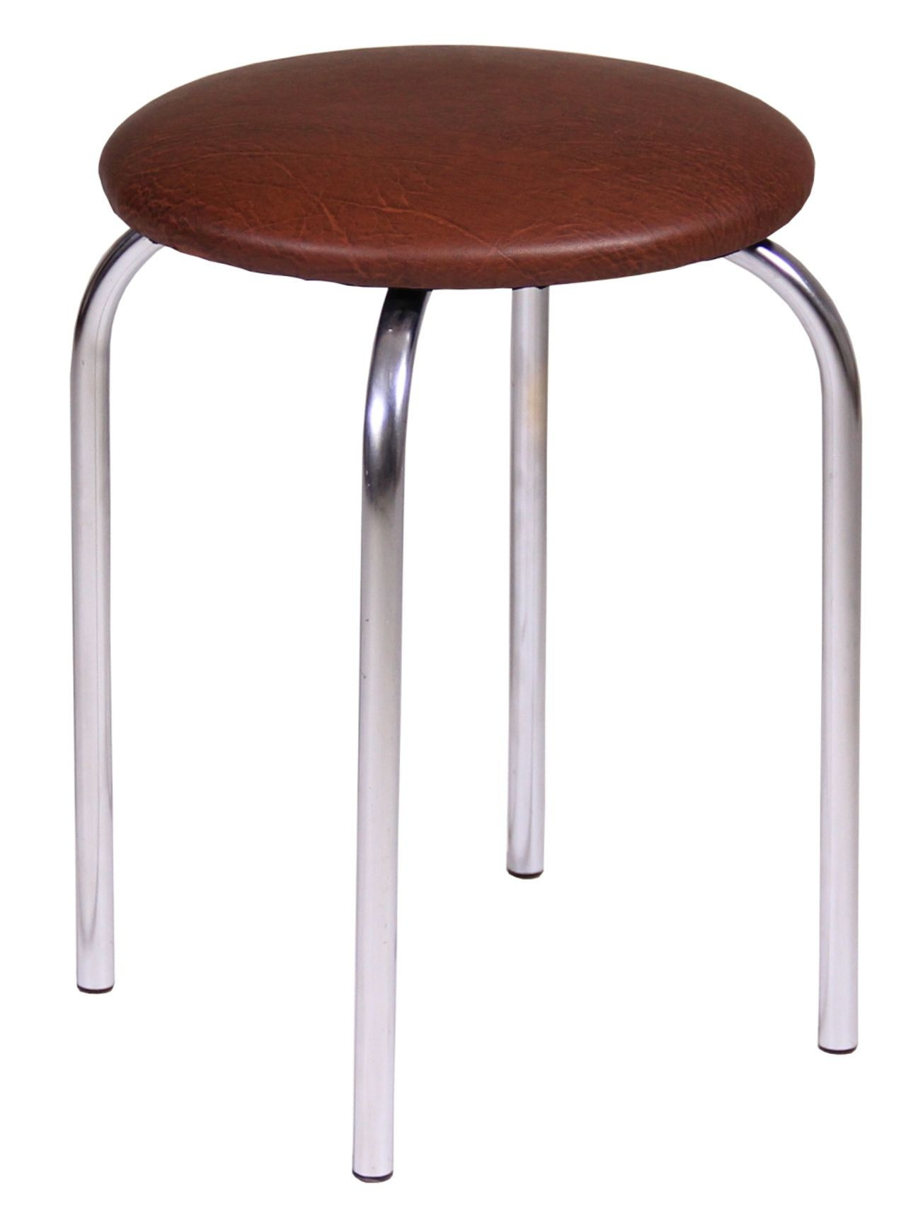 Materiál: ekokůže, chrom. Barva tmavě hnědá. Rozměry: - průměr sedáku: 35 cm - celková výška: 49 cm