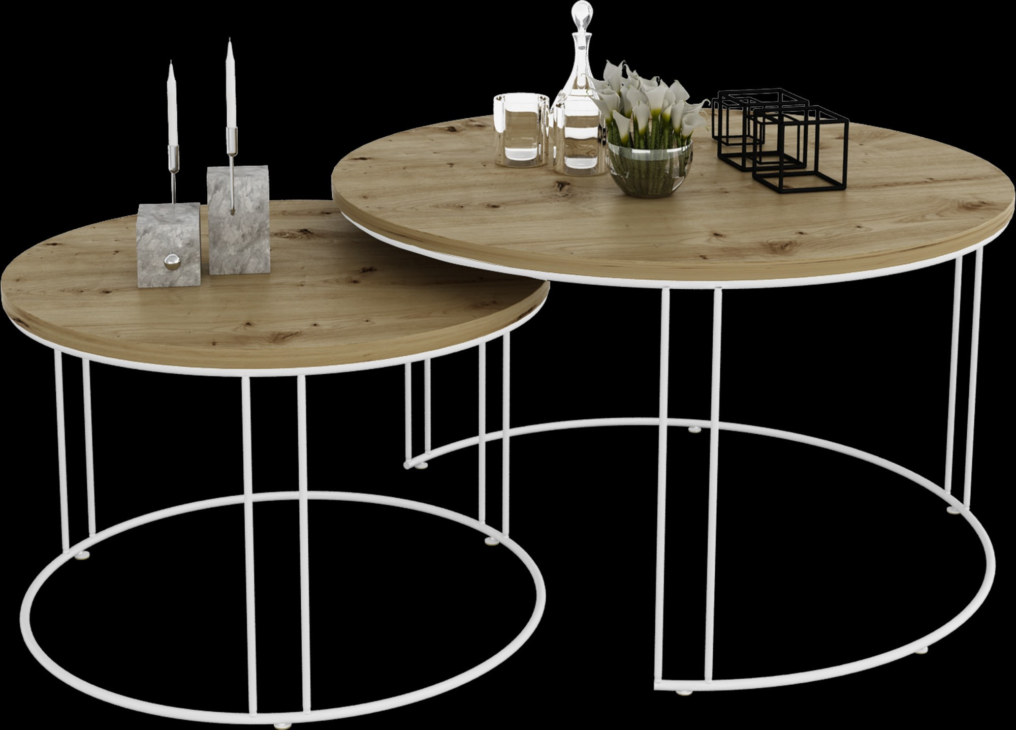 Sada konferenčních stolků ETTA s rámem z pevného, silného drátu a deskou z laminované desky. ETTA je ideální místo k odpočinku u kávy. Jednoduchý a zároveň neobyčejný design, který se hodí do každého interiéru.