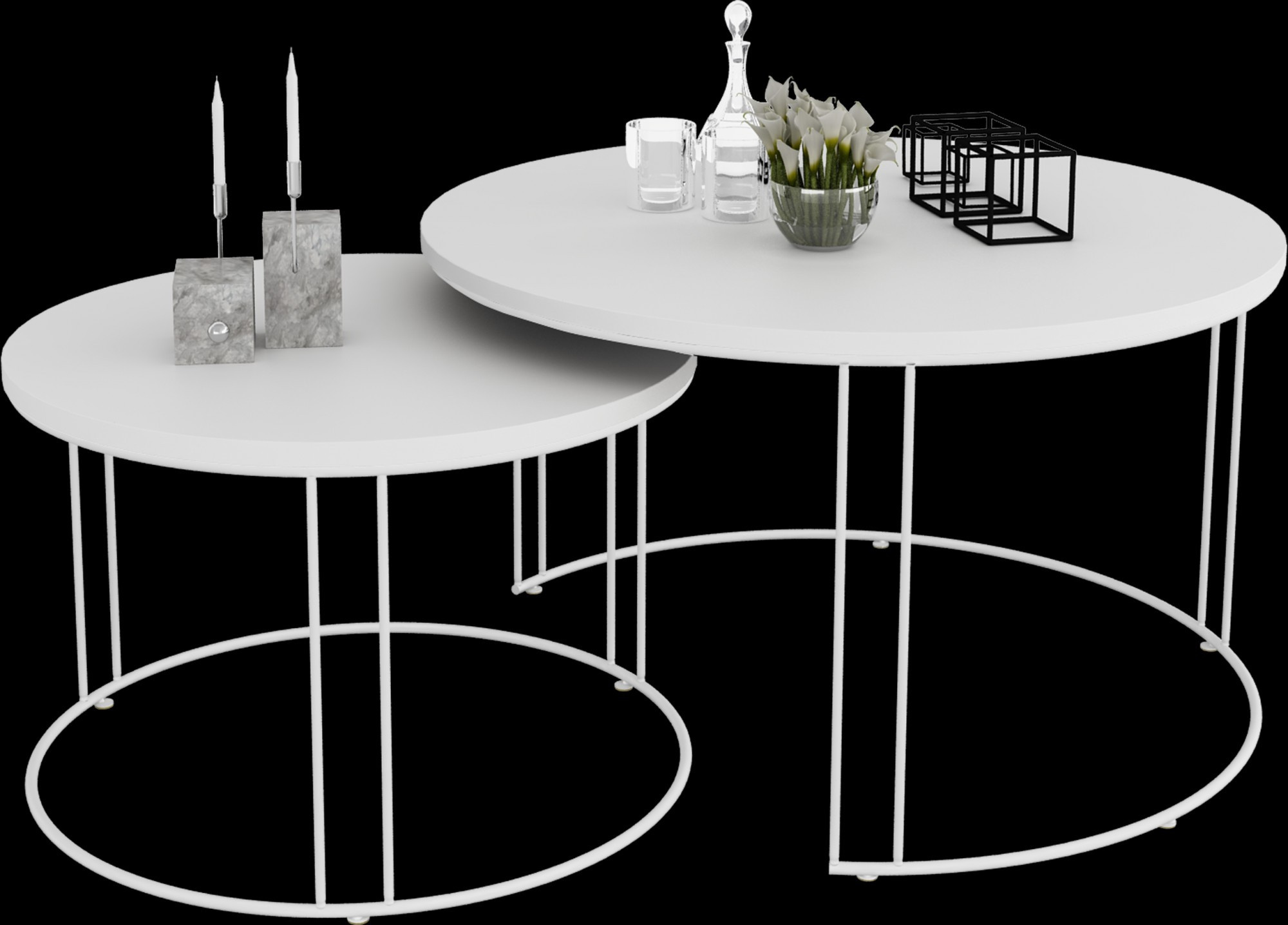 Sada konferenčních stolků ETTA s rámem z pevného, silného drátu a deskou z laminované desky. ETTA je ideální místo k odpočinku u kávy. Jednoduchý a zároveň neobyčejný design, který se hodí do každého interiéru.