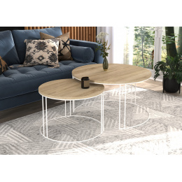 Sada konferenčních stolků ETTA s rámem z pevného, silného drátu a deskou z laminované desky. ETTA je ideální místo k odpočinku u kávy. Jednoduchý a zároveň neobyčejný design, který se hodí do každého interiéru.