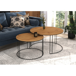 Sada konferenčních stolků ETTA s rámem z pevného, silného drátu a deskou z laminované desky. ETTA je ideální místo k odpočinku u kávy. Jednoduchý a zároveň neobyčejný design, který se hodí do každého interiéru.