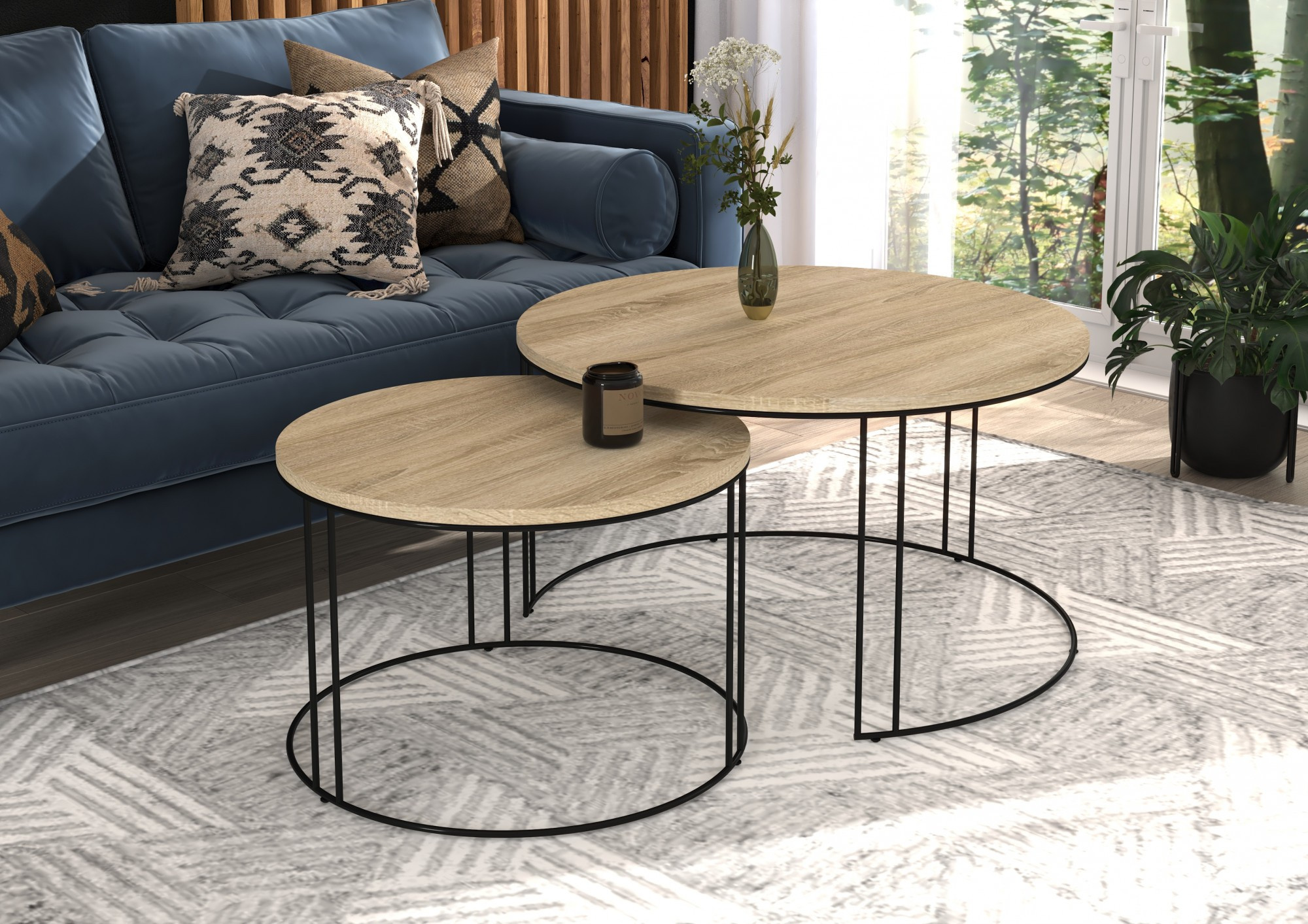 Sada konferenčních stolků ETTA s rámem z pevného, silného drátu a deskou z laminované desky. ETTA je ideální místo k odpočinku u kávy. Jednoduchý a zároveň neobyčejný design, který se hodí do každého interiéru.
