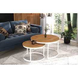Sada konferenčních stolků OKIN s ocelovým rámem a deskou z laminované desky. OKIN je ideální místo k odpočinku u kávy. Jednoduchý a zároveň neobyčejný design, který se hodí do každého interiéru.