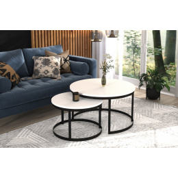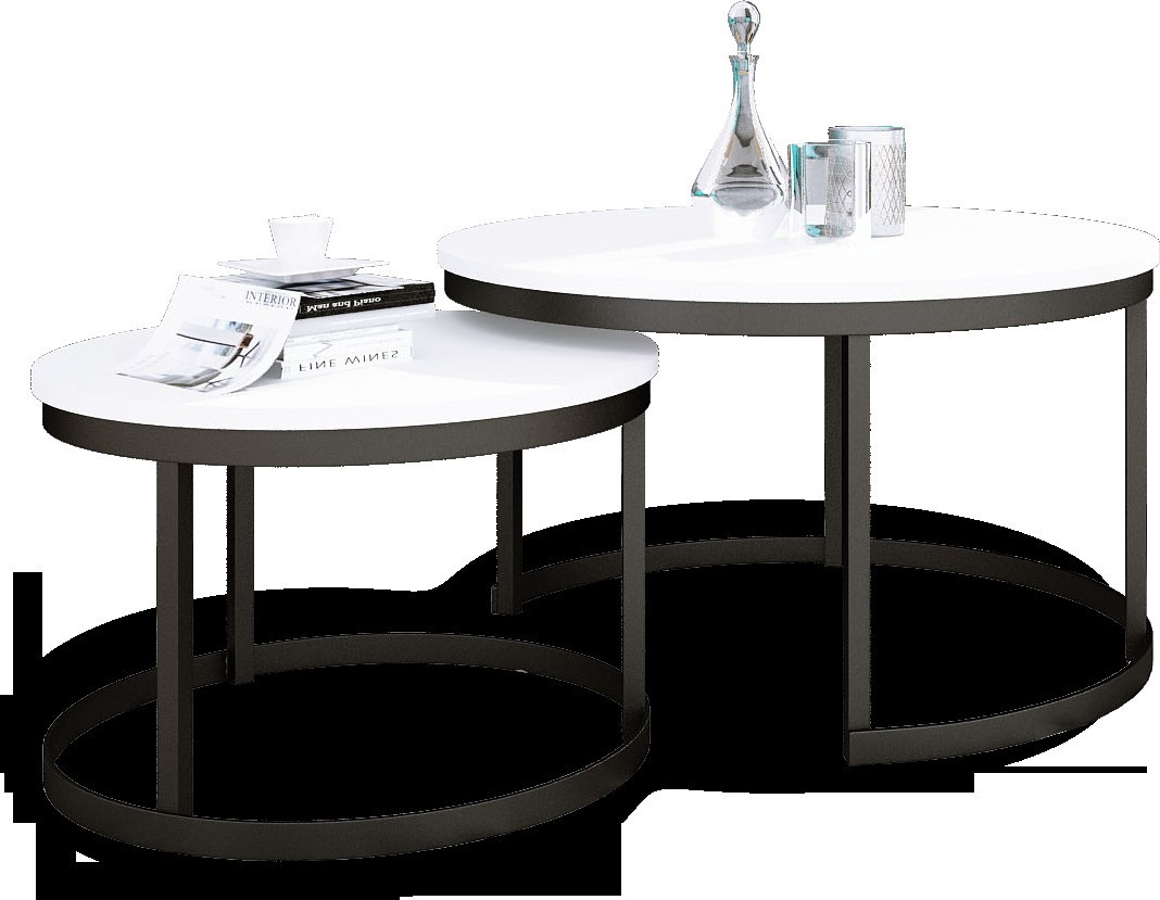 Sada konferenčních stolků OKIN s ocelovým rámem a deskou z laminované desky. OKIN je ideální místo k odpočinku u kávy. Jednoduchý a zároveň neobyčejný design, který se hodí do každého interiéru.