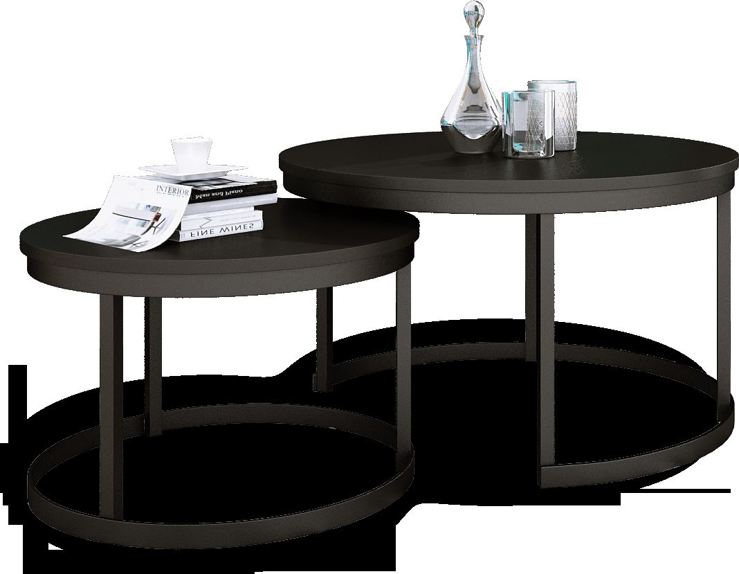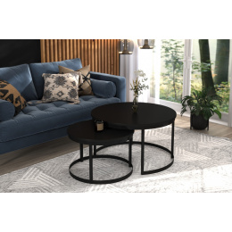 Sada konferenčních stolků OKIN s ocelovým rámem a deskou z laminované desky. OKIN je ideální místo k odpočinku u kávy. Jednoduchý a zároveň neobyčejný design, který se hodí do každého interiéru.