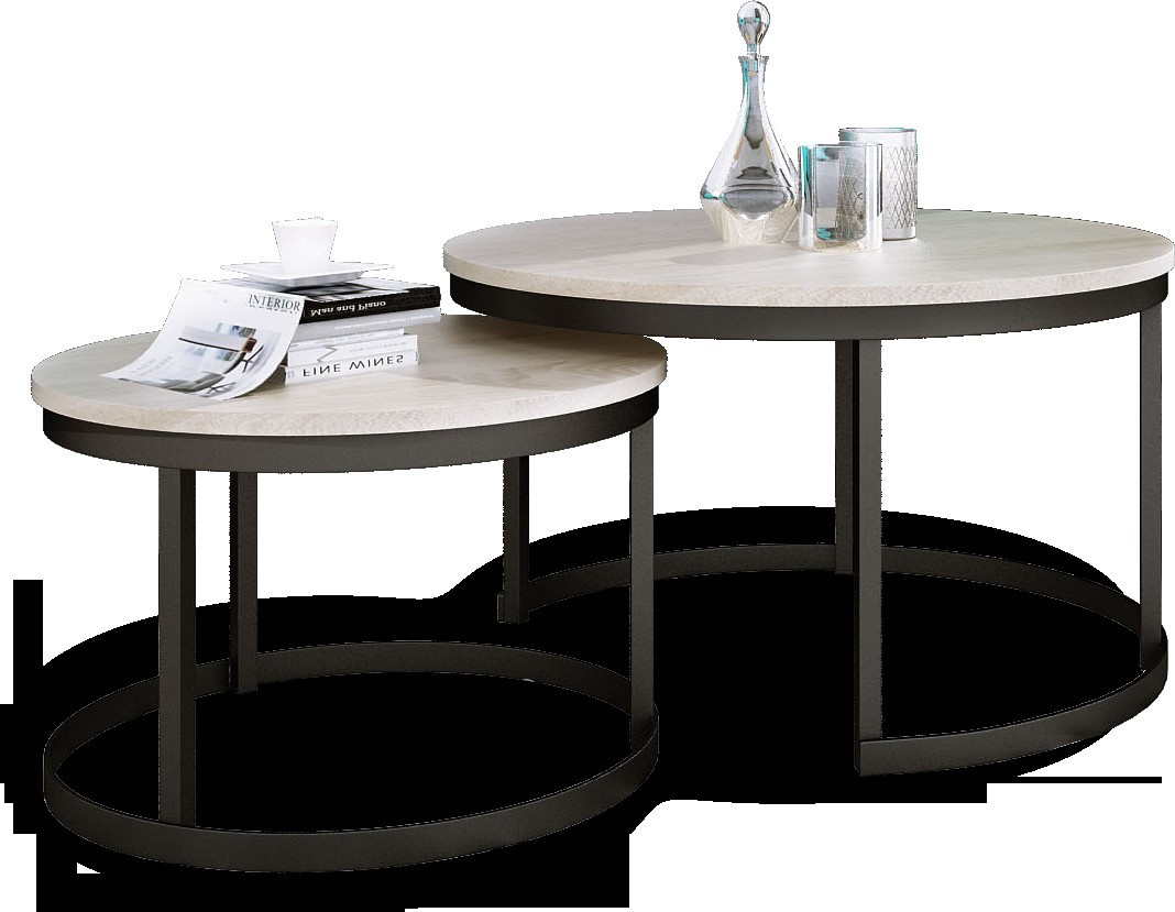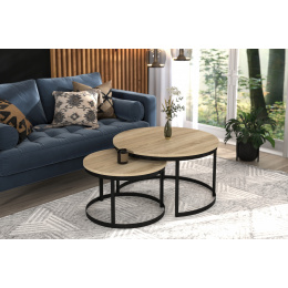 Sada konferenčních stolků OKIN s ocelovým rámem a deskou z laminované desky. OKIN je ideální místo k odpočinku u kávy. Jednoduchý a zároveň neobyčejný design, který se hodí do každého interiéru.
