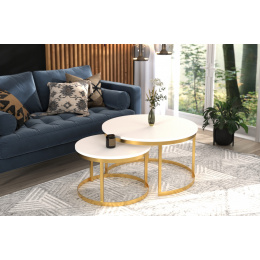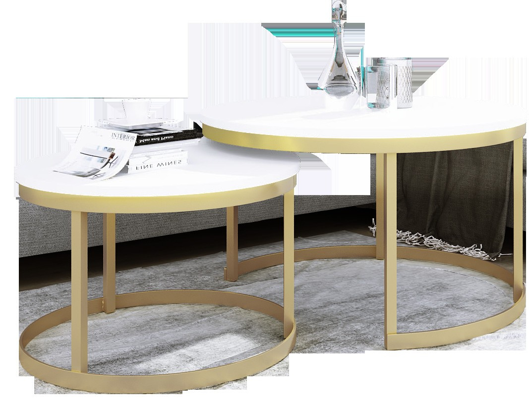 Konferenční stolek 2v1 OKIN Zlatý+Bílý
