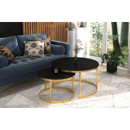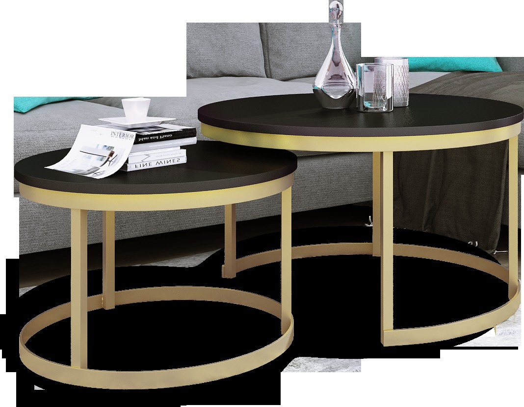 Sada konferenčních stolků OKIN s ocelovým rámem a deskou z laminované desky. OKIN je ideální místo k odpočinku u kávy. Jednoduchý a zároveň neobyčejný design, který se hodí do každého interiéru.