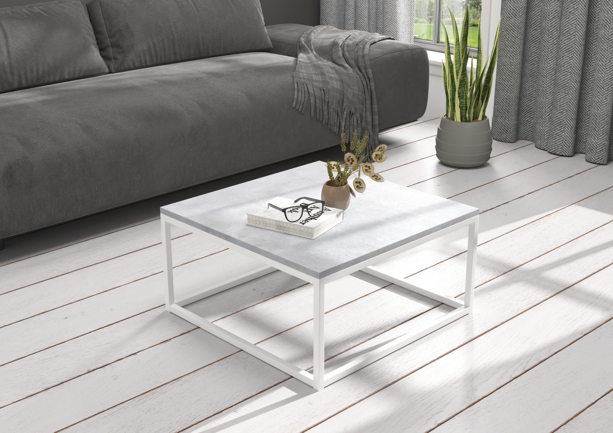Konferenční stolek BELTEN 65x65 Bílý+Beton